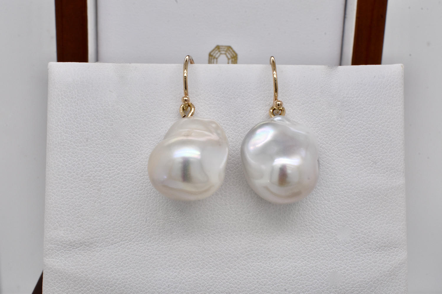 SOLD 9ct Yellow Gold 13-15mm Freshwater Baroque Pearl Earrings