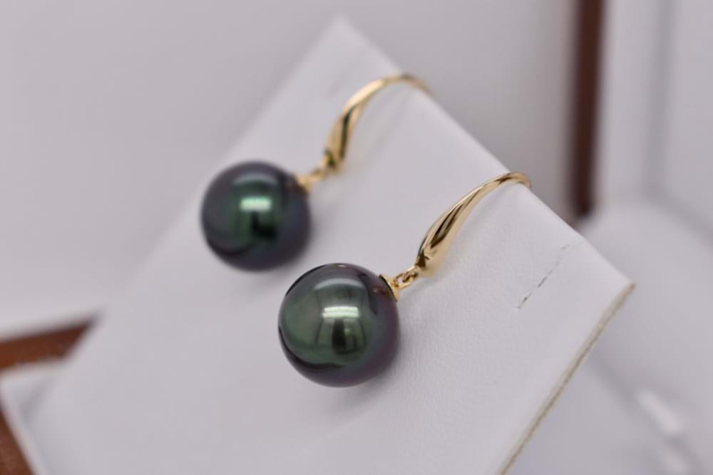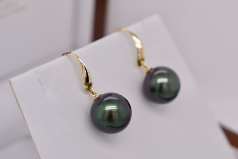 SOLD 9ct Yellow Gold Tahitian Pearl Drop Earrings