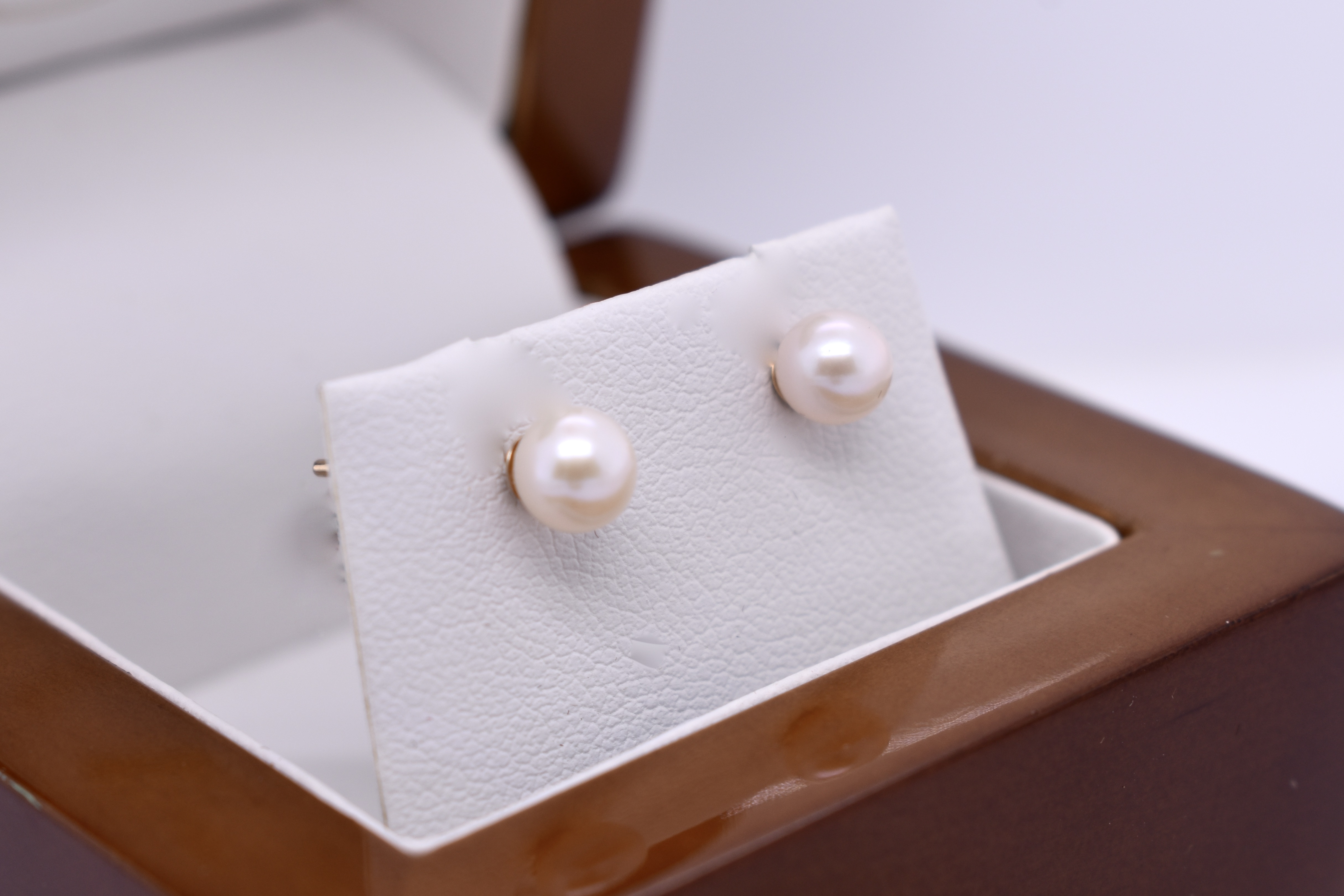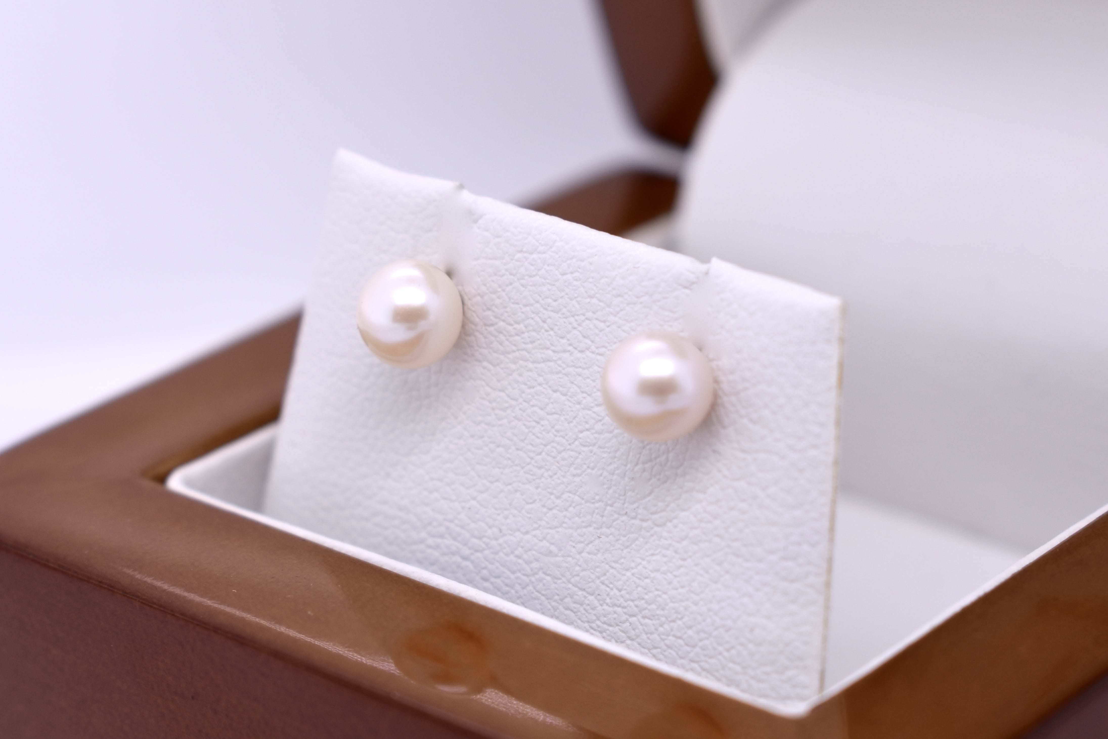 Classic 5.0-5.5mm round white freshwater pearls set with 9ct yellow gold stud posts and butterfly fittings
