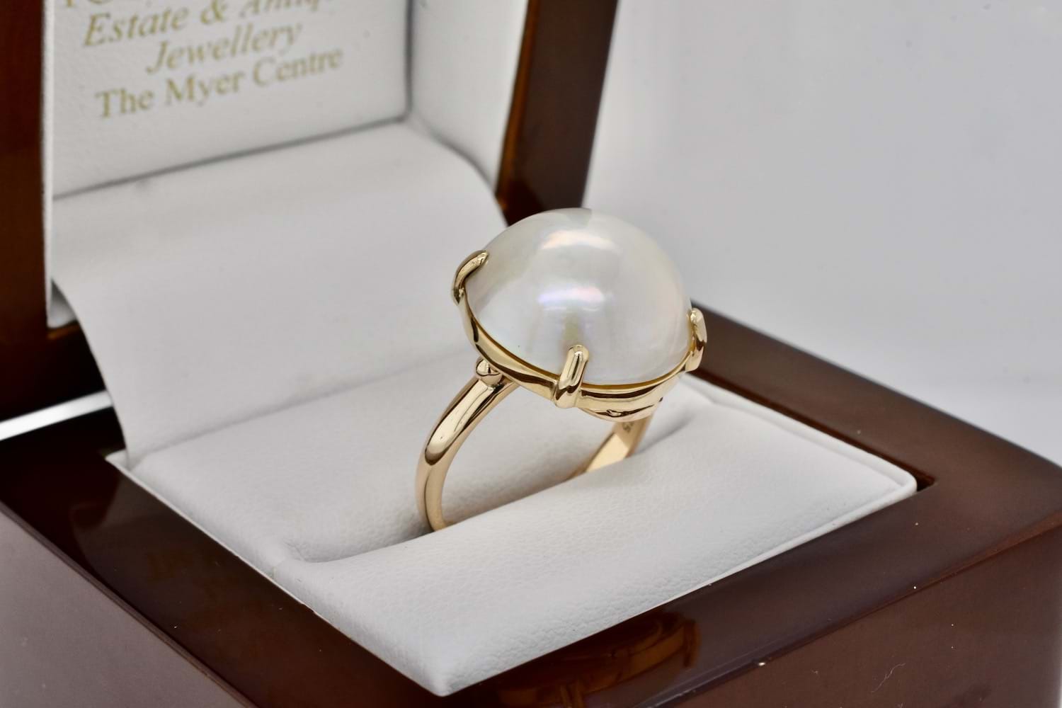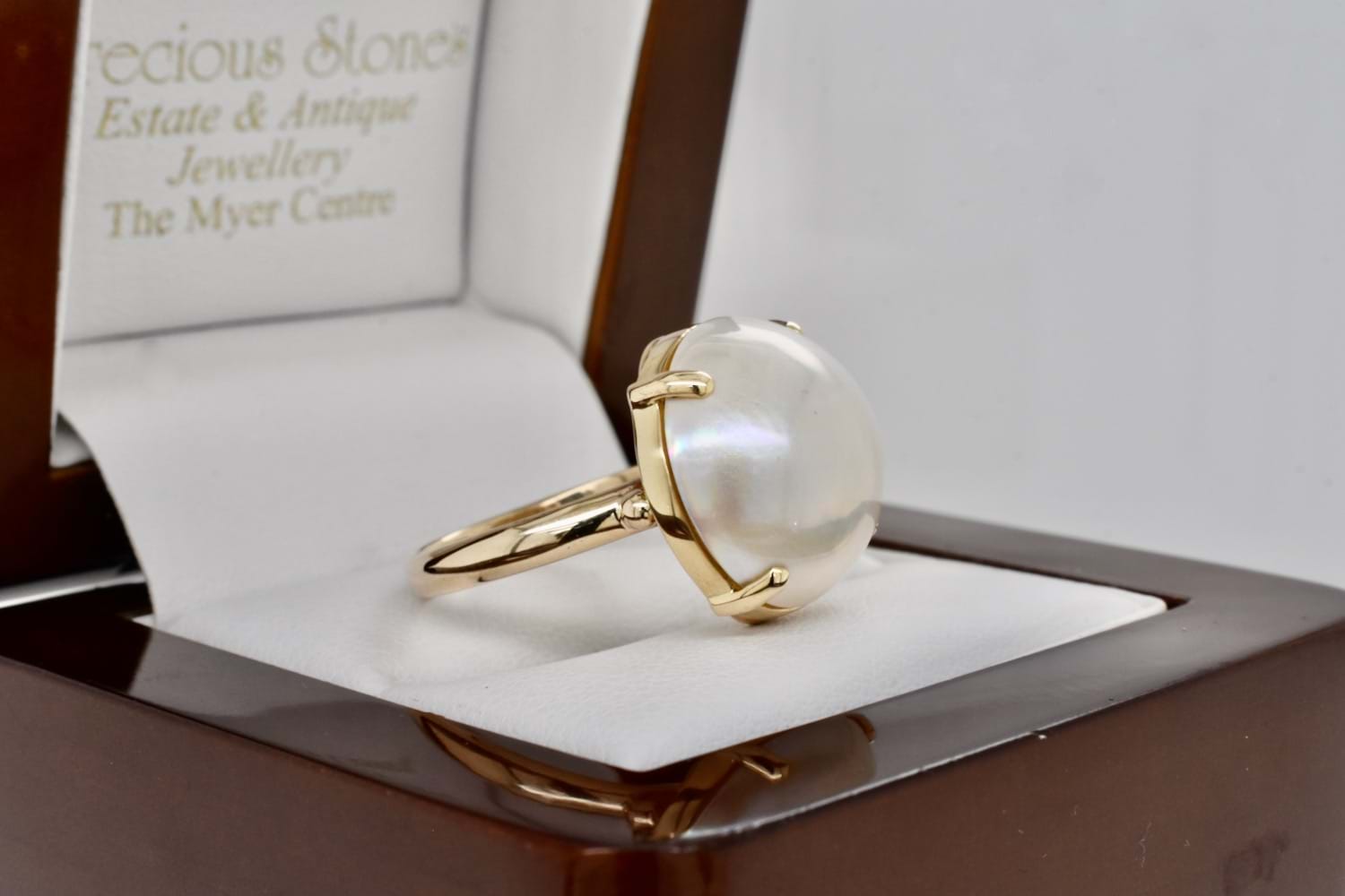 SOLD Handmade 9ct Yellow Gold White Mabe Pearl Ring (P)