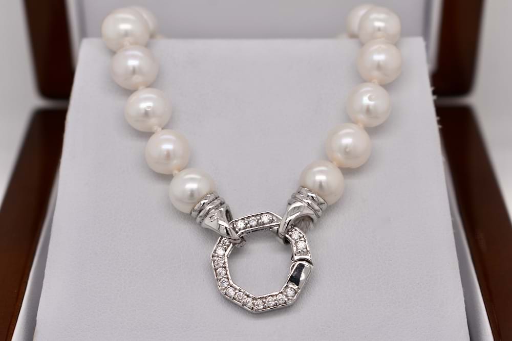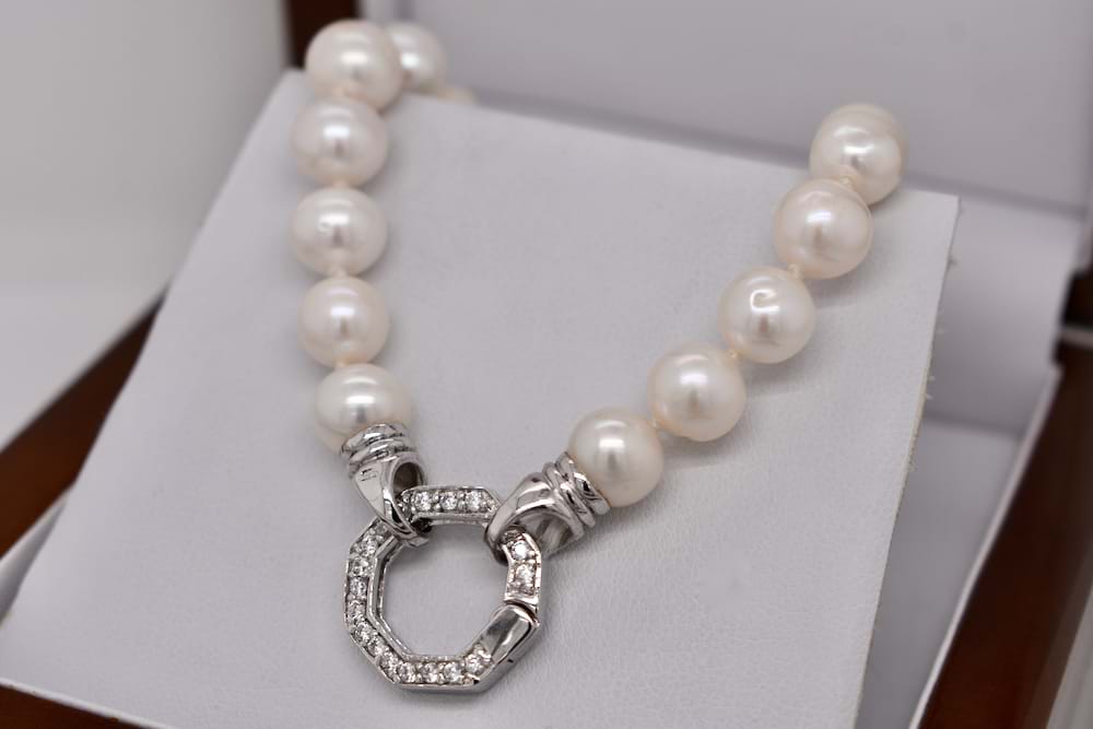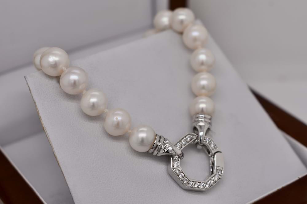 A lovely freshwater pearl bracelet with pearls measuring 7.5-8mm and a sterling silver cubic zirconia hexagon clasp