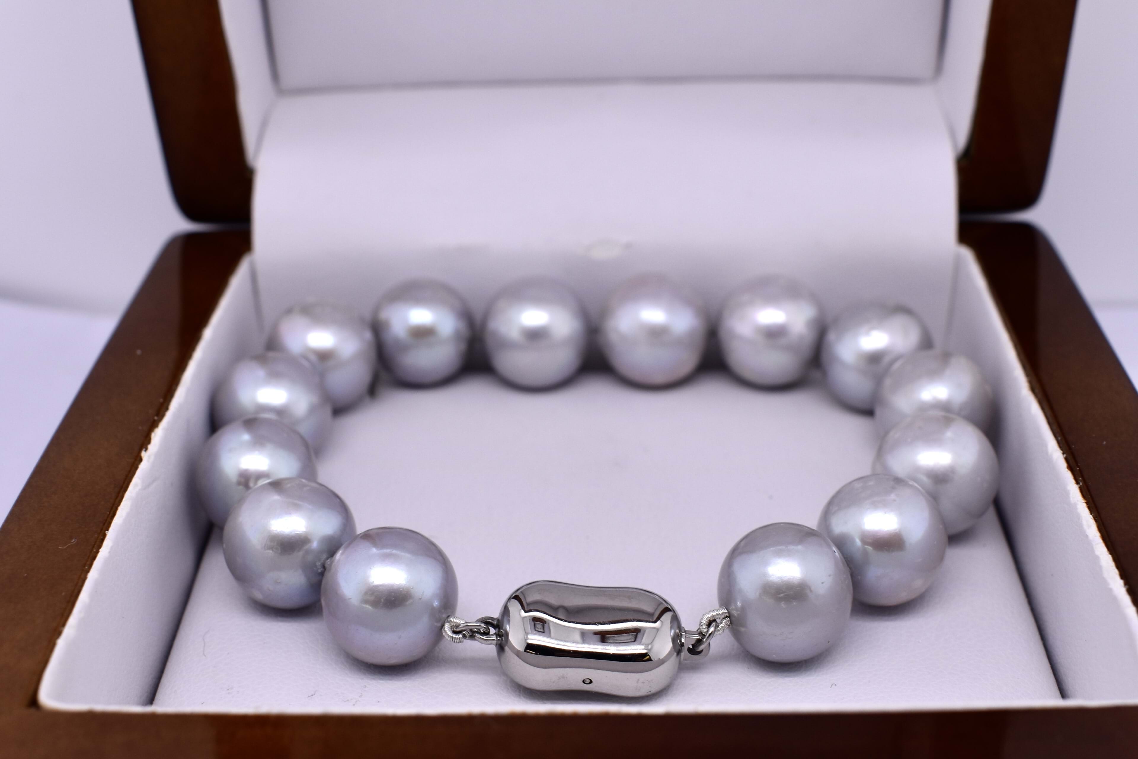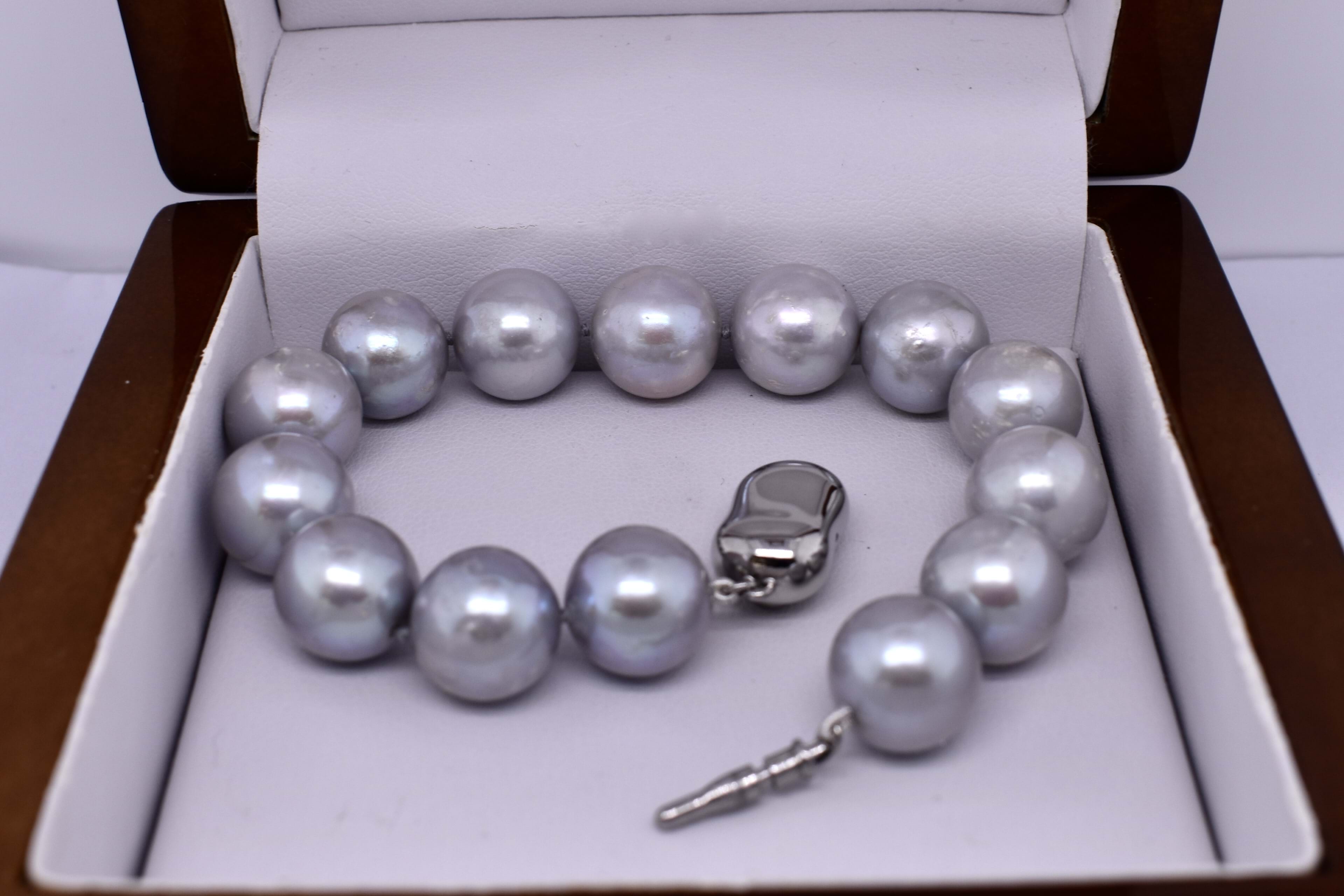 SOLD Freshwater 11.5-12mm Light Grey Round Pearl 20cm Bracelet with Steel Clasp
