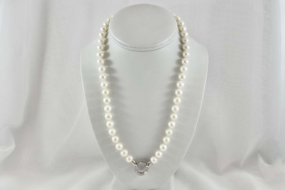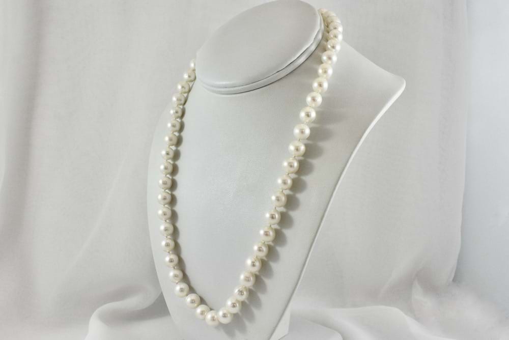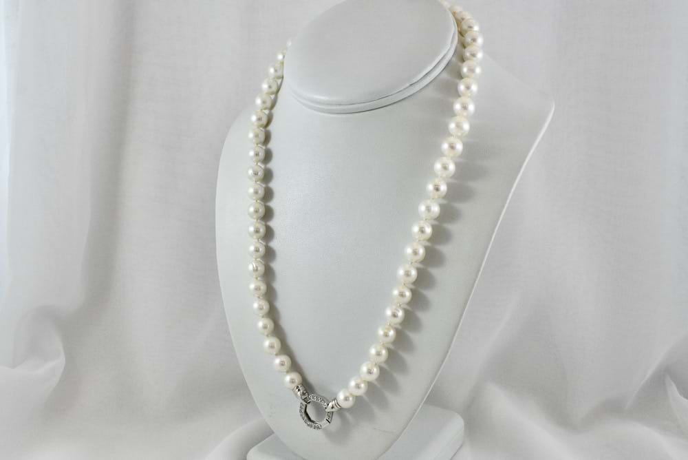 Sterling Silver strand of 9mm freshwater pearls measuring 50cm with a cubic zirconia set hex clasp