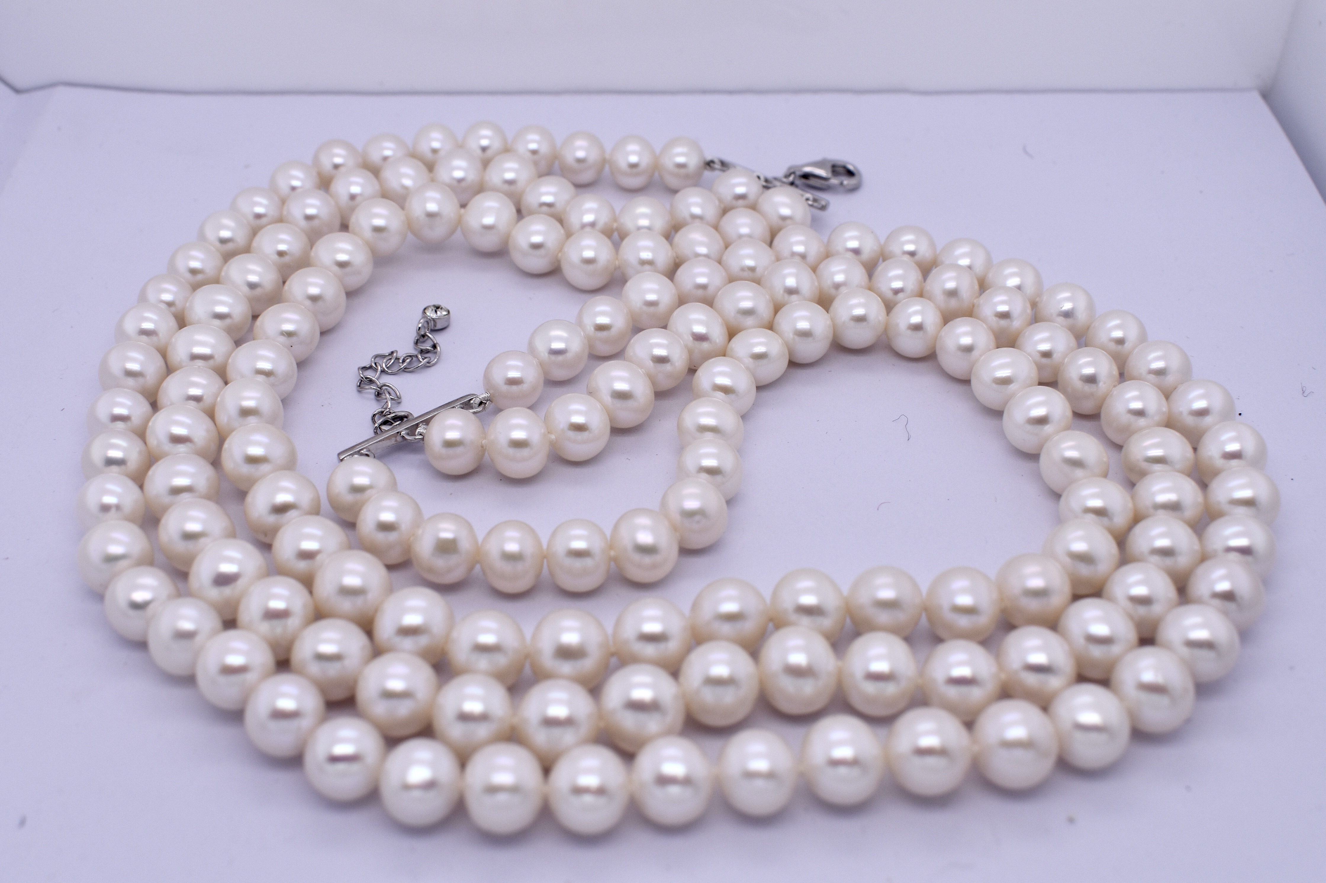 SOLD Sterling Silver 7-8mm Freshwater Triple Pearl Strand
