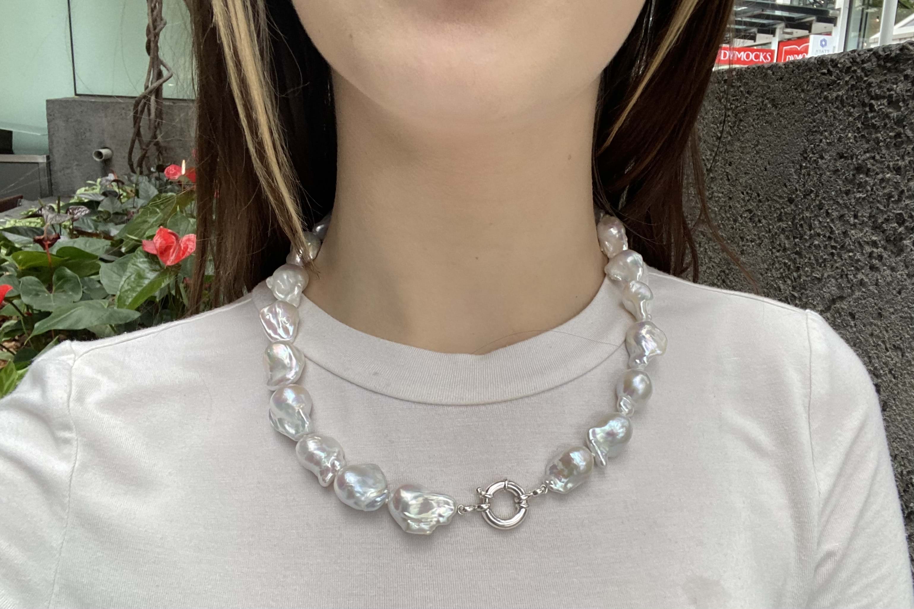 SOLD Sterling Silver Freshwater Baroque Pearl 50cm Strand with Bolt Ring Clasp