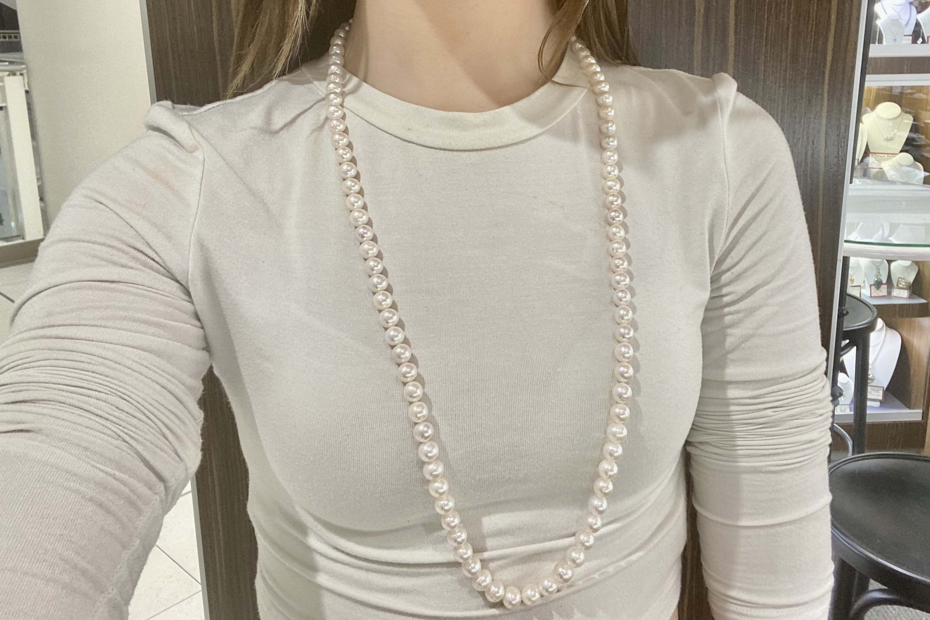 SOLD Sterling Silver Freshwater Pearl 86cm Strand with CZ Hexagon Clasp