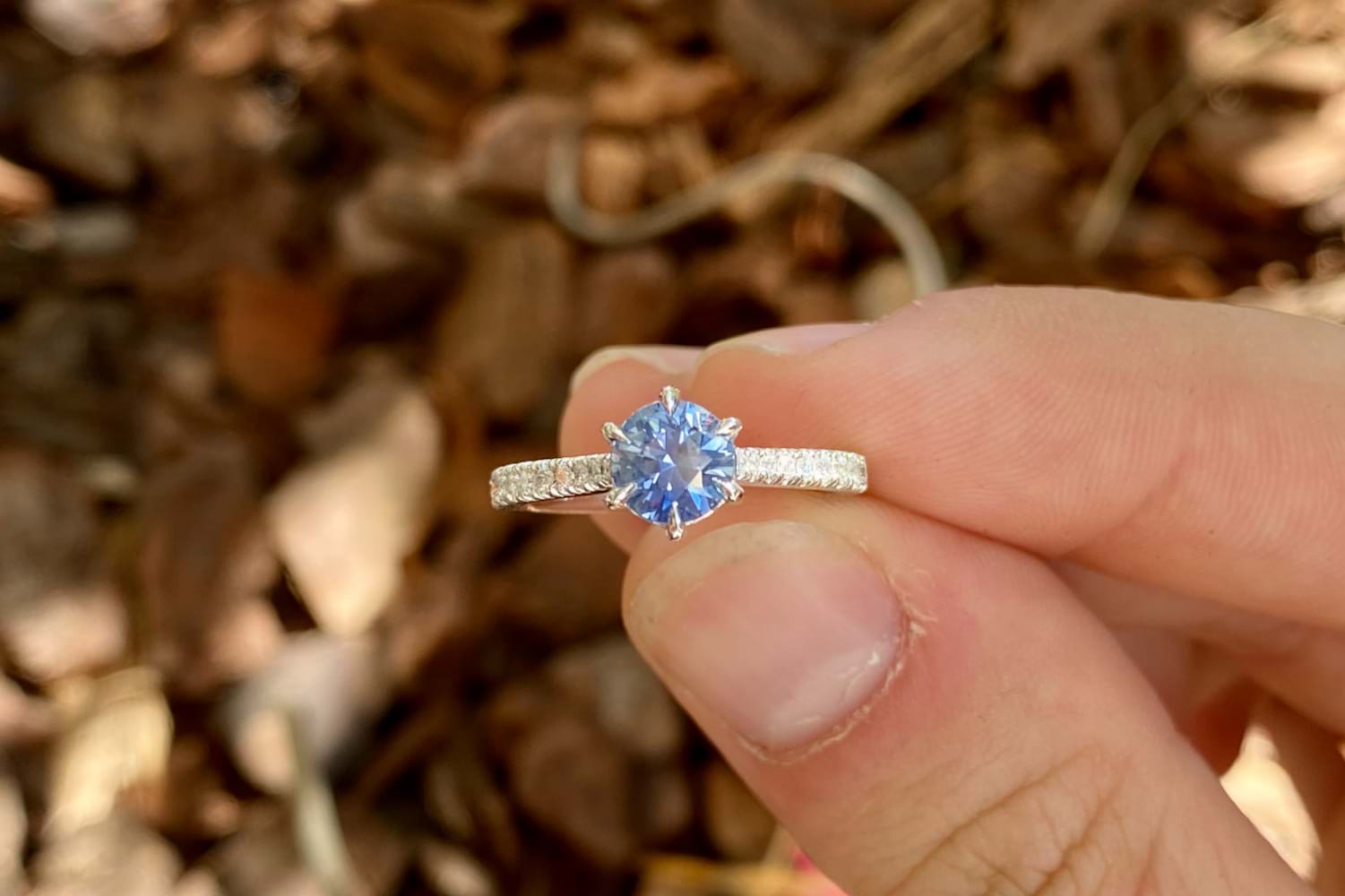 18ct White Gold 0.97ct Ceylon Greyish Blue Sapphire & 0.19ct Diamond Ring (L+)