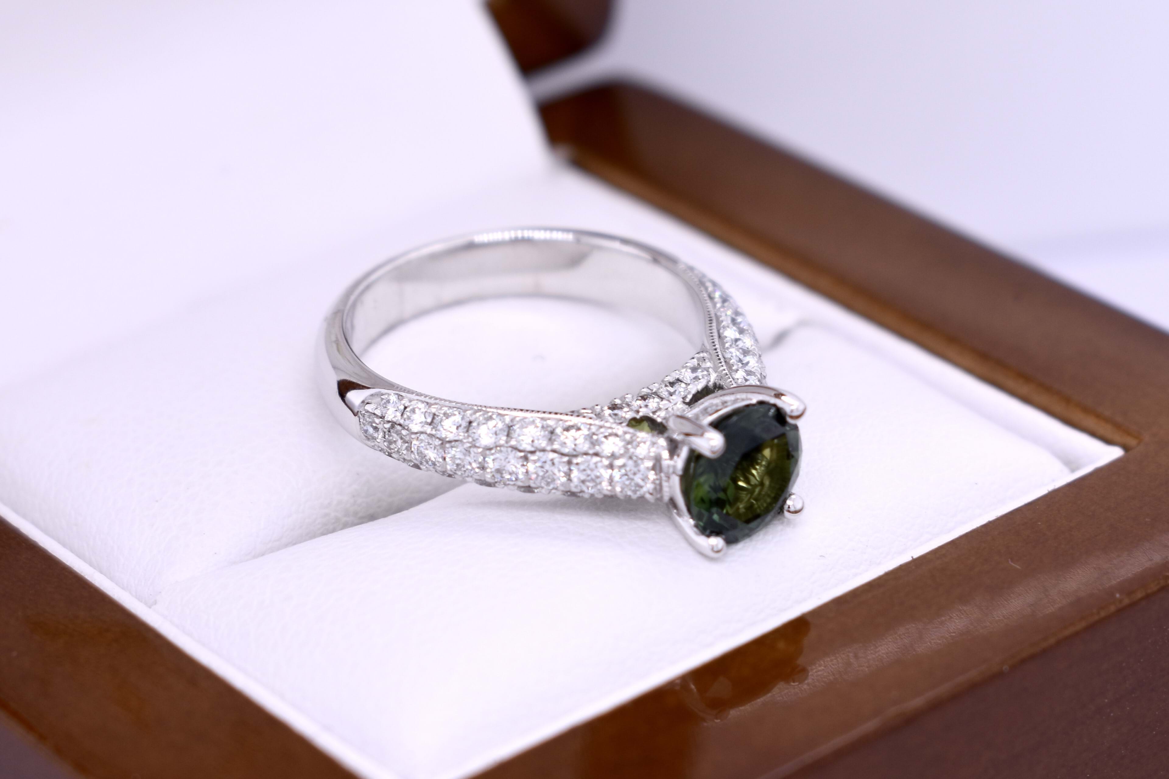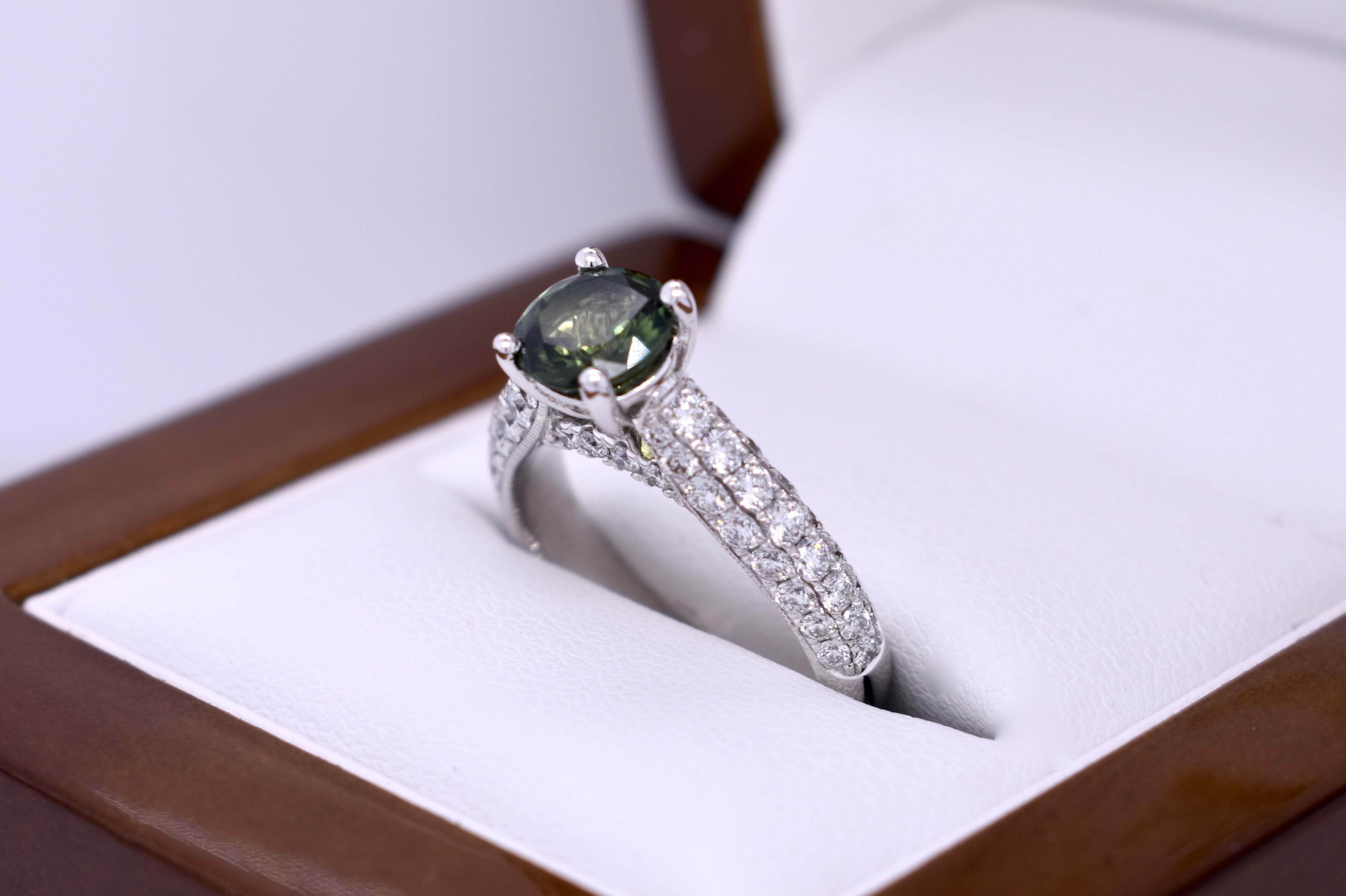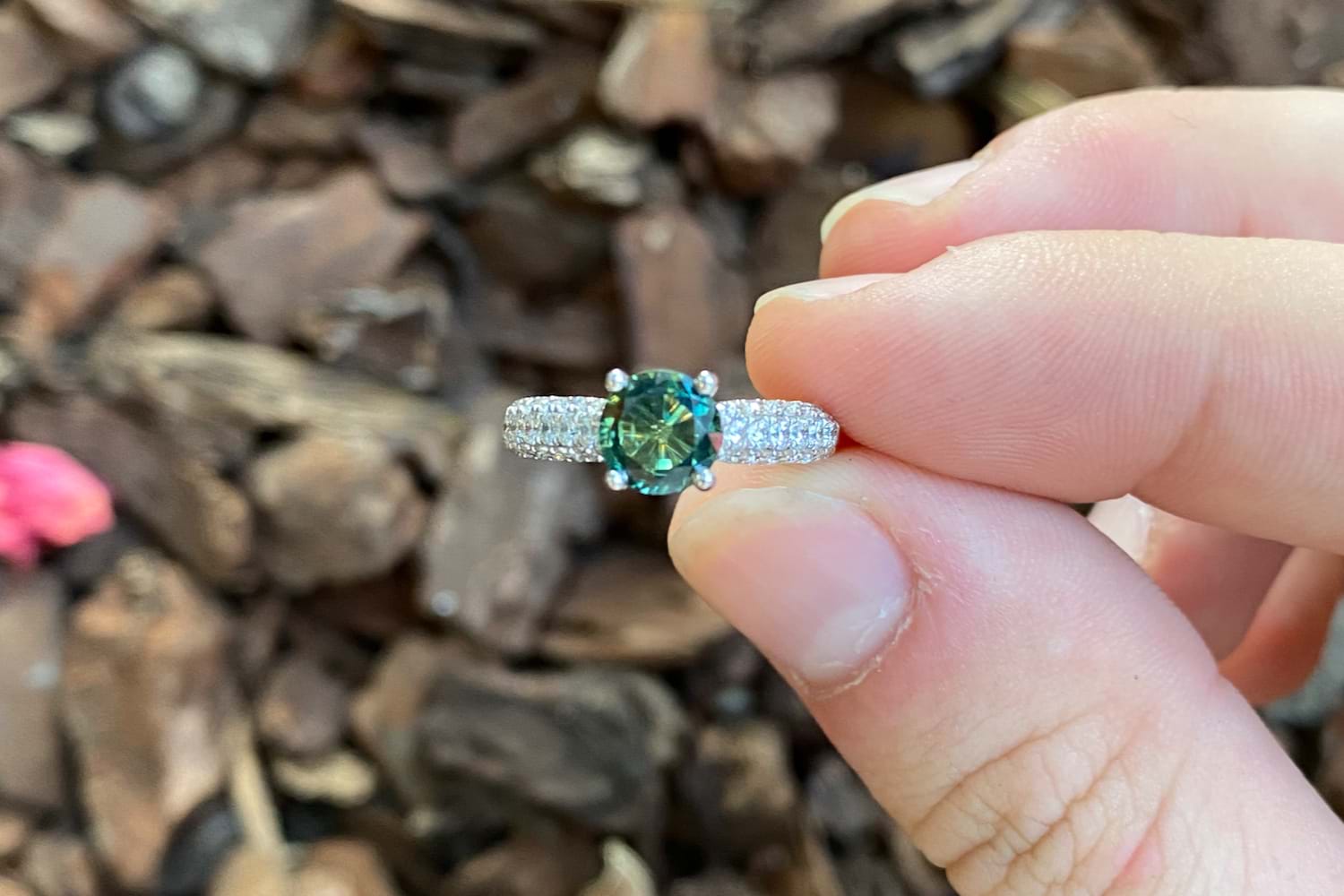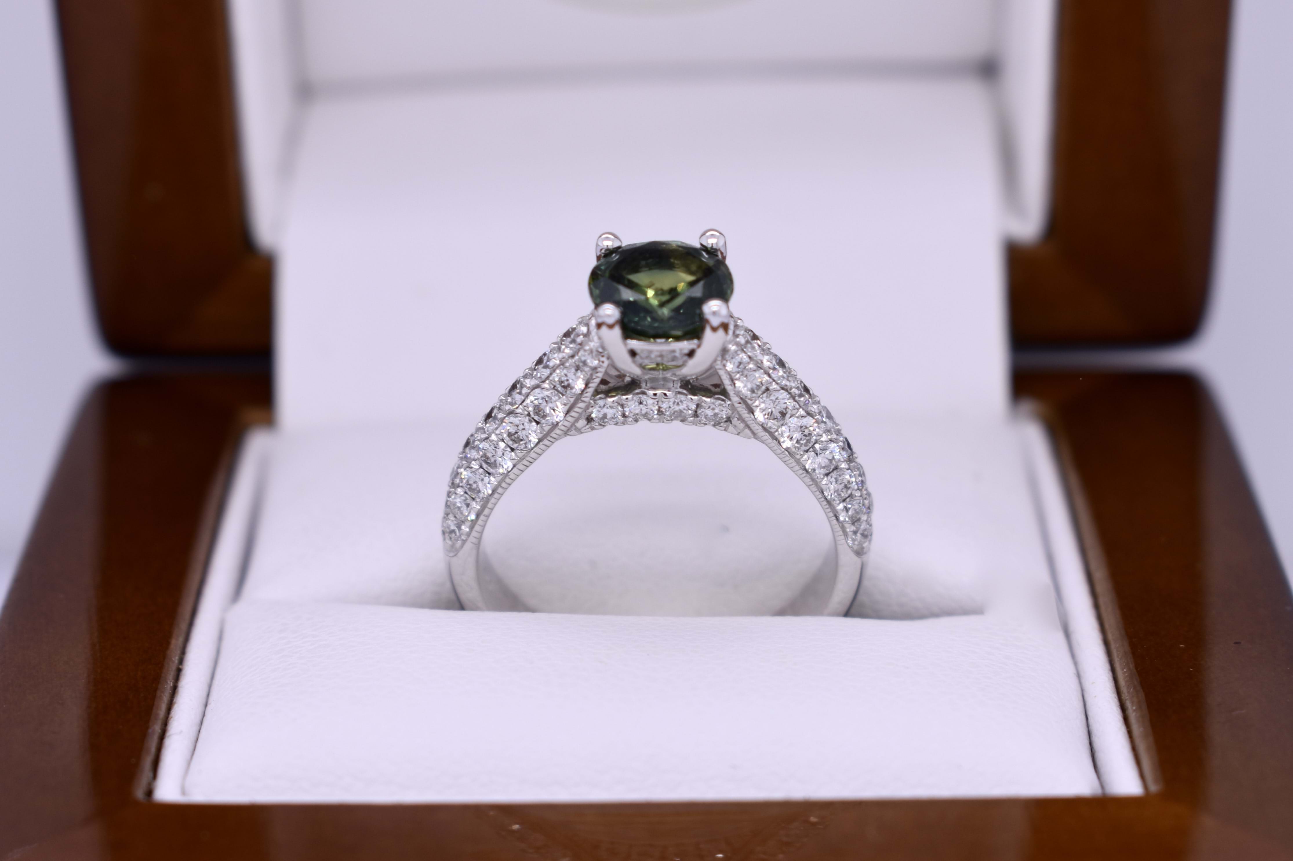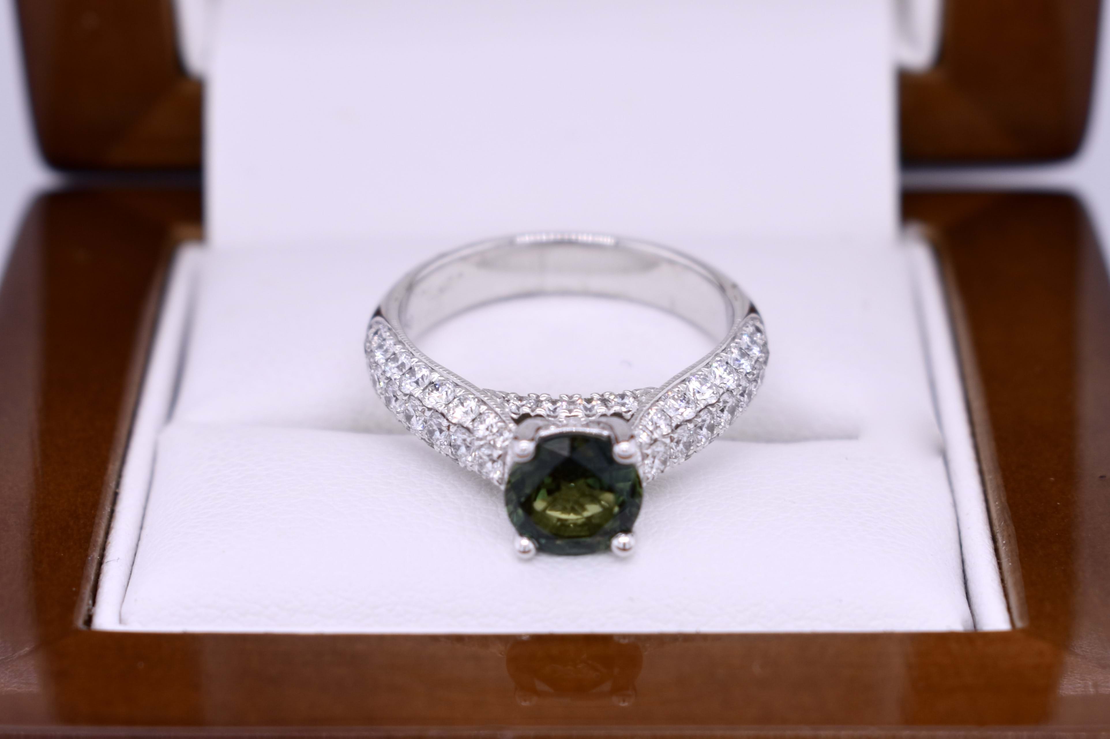 18ct White Gold 1.25ct Green Aus Sapphire & 1.01ct Pave Set Diamond Ring (L)