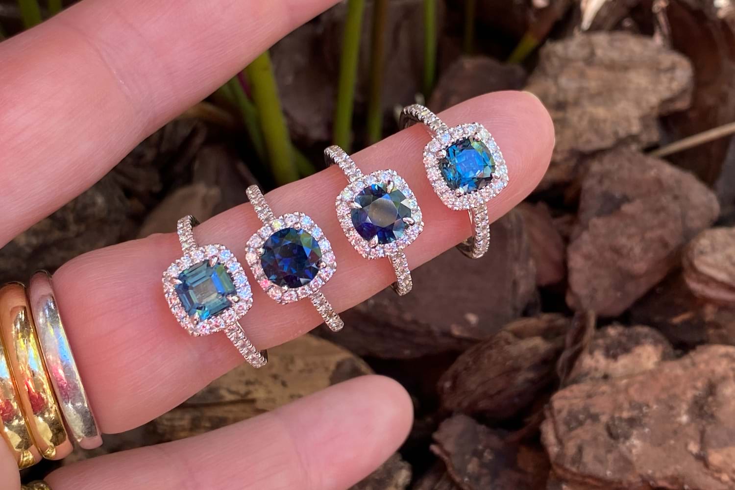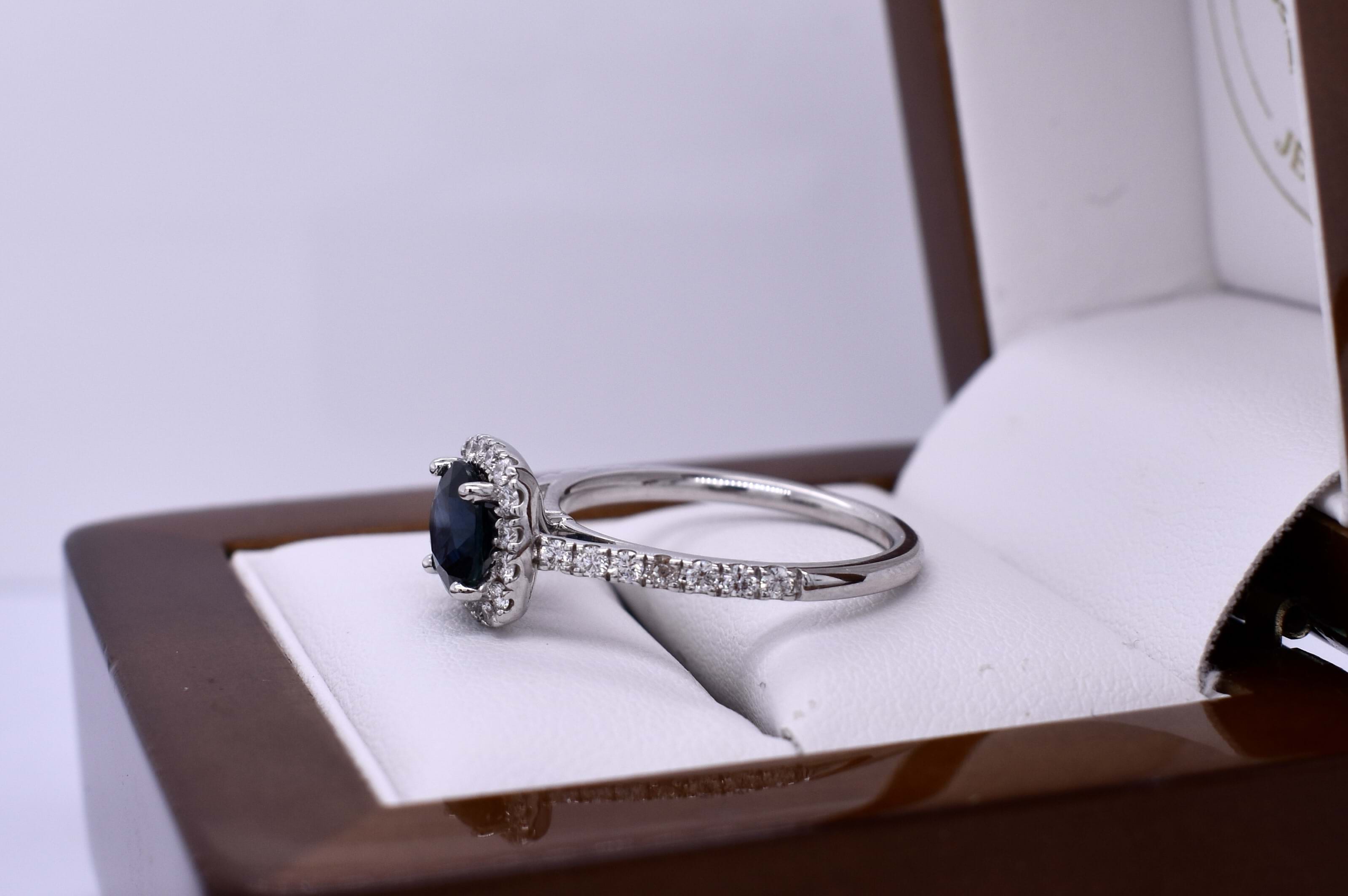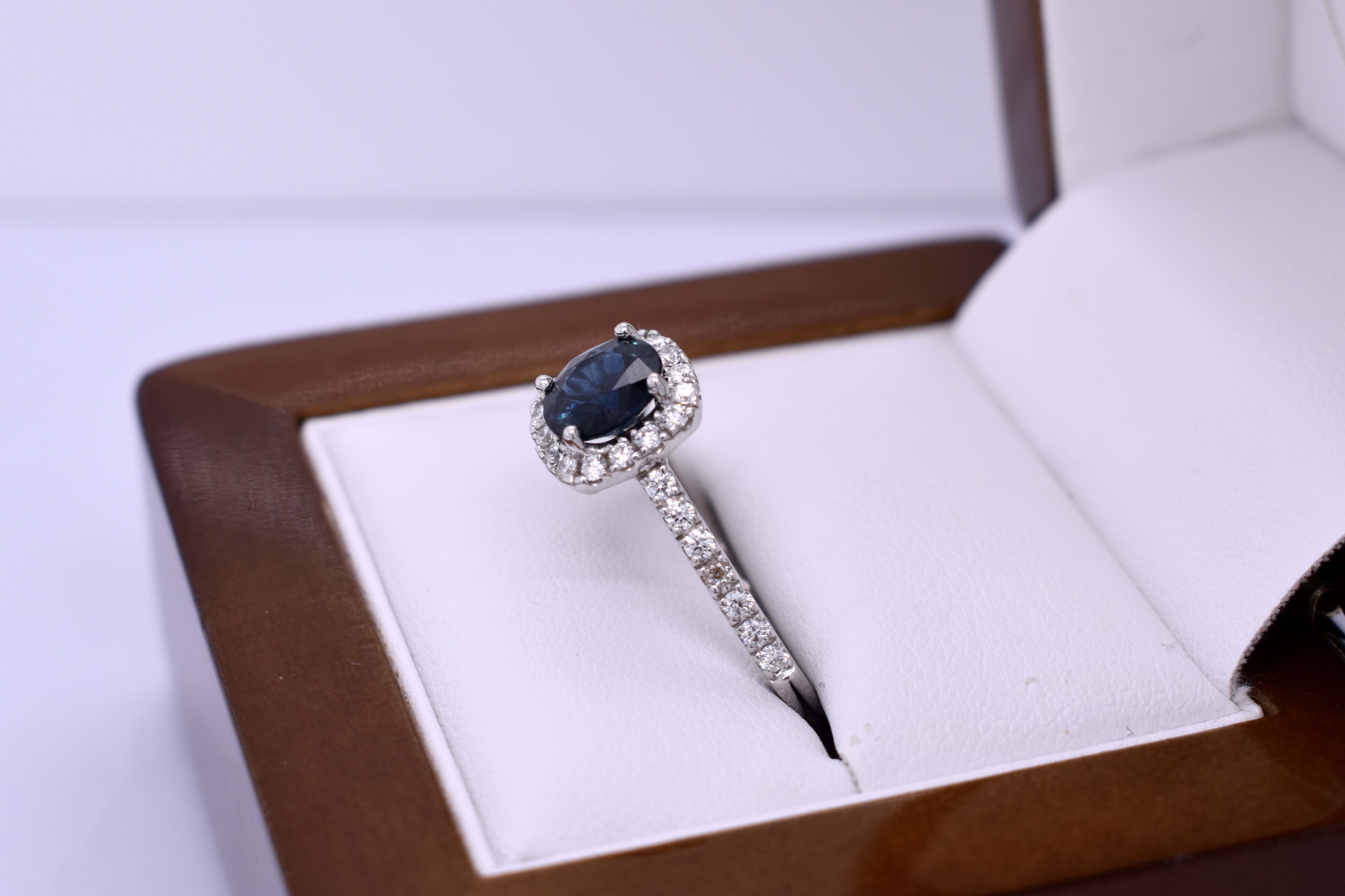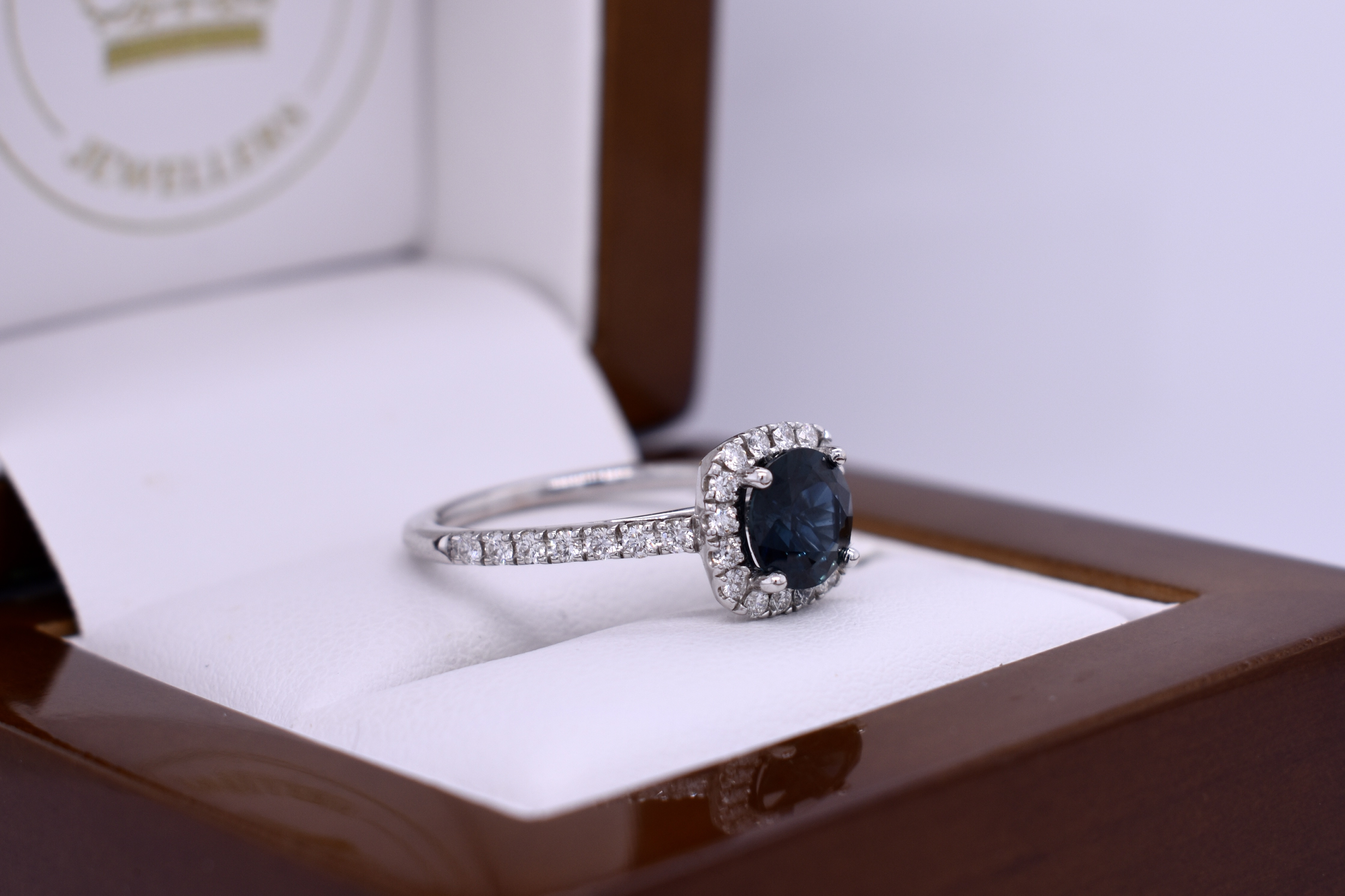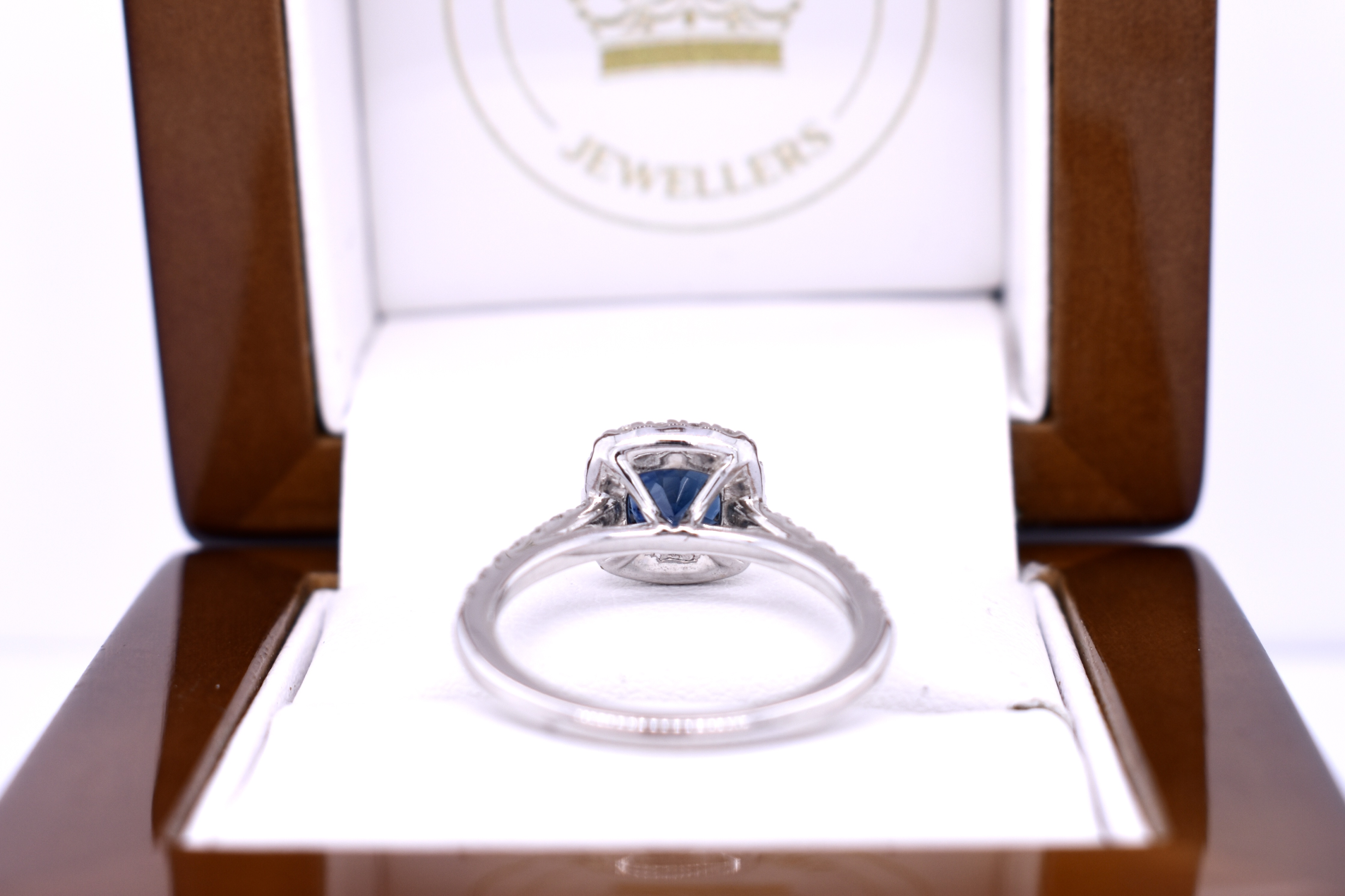 18ct White Gold 1.46ct Deep Blue Aus Sapphire & 0.44ct Diamond Halo Ring (N)