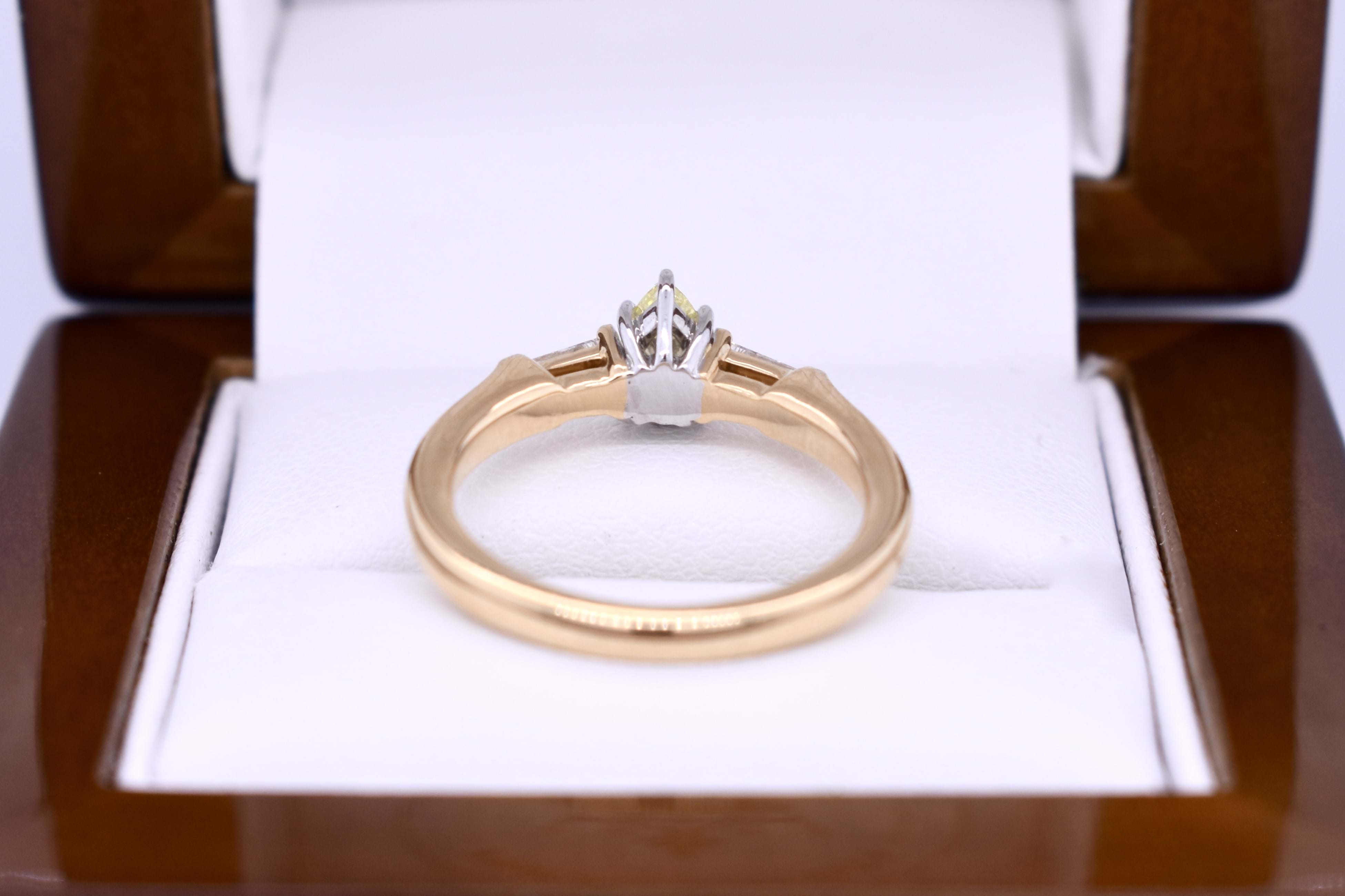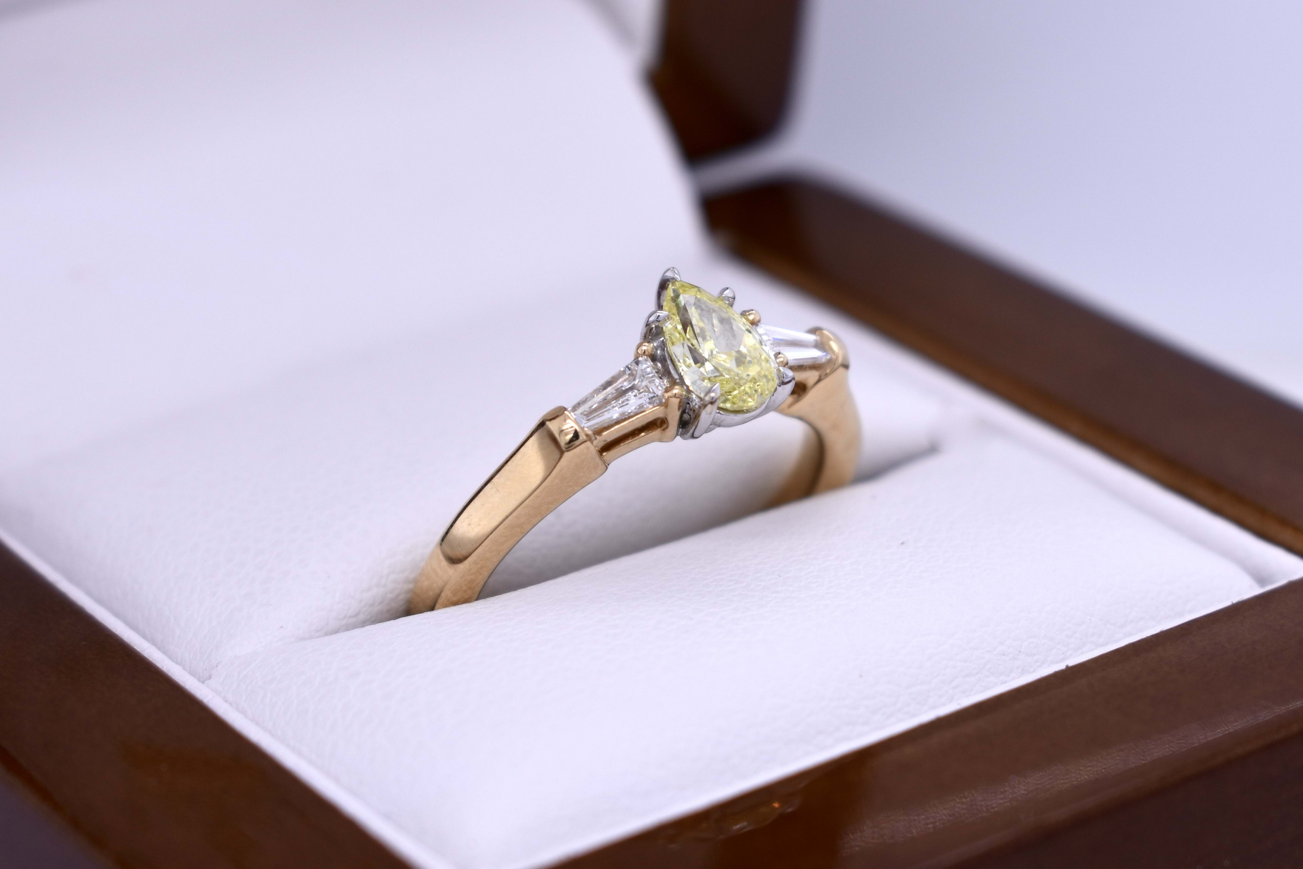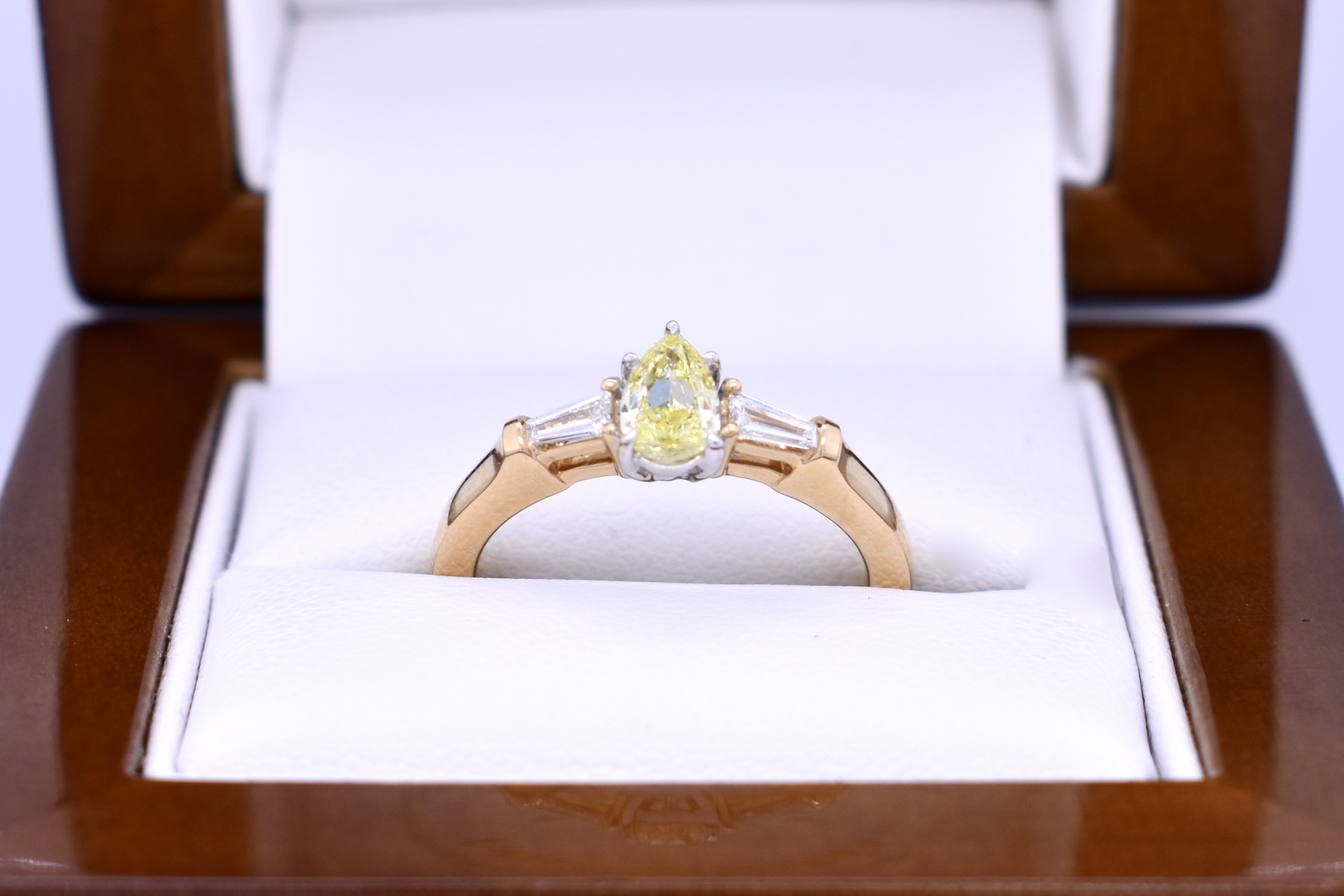 18ct Yellow Gold 0.50ct Fancy Intense Yellow Pear Diamond & 0.18ct Baguette Diamond Ring (M)