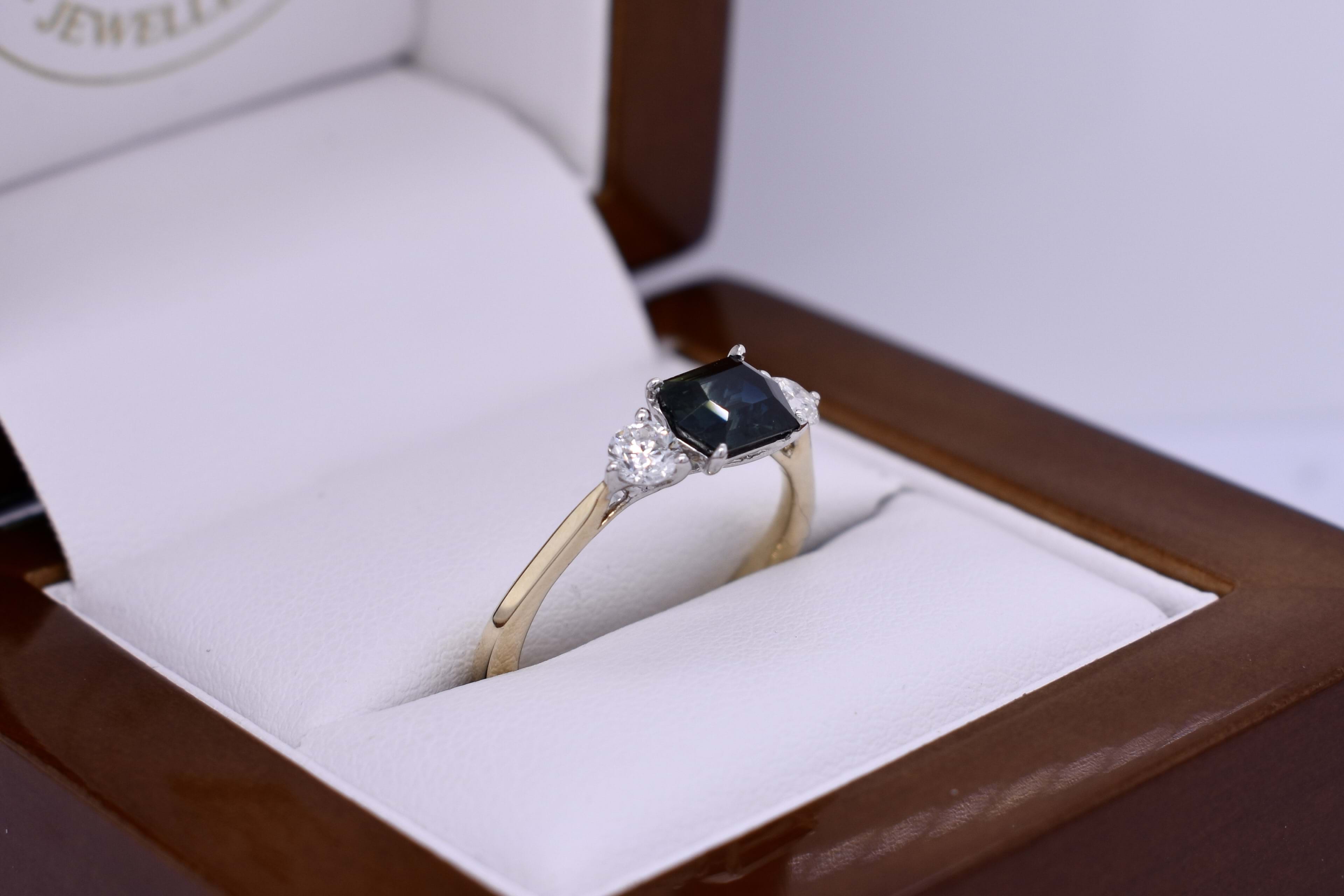 18ct Yellow Gold Hexagonal Shaped 0.97ct Australian Sapphire and Diamond Ring (M)