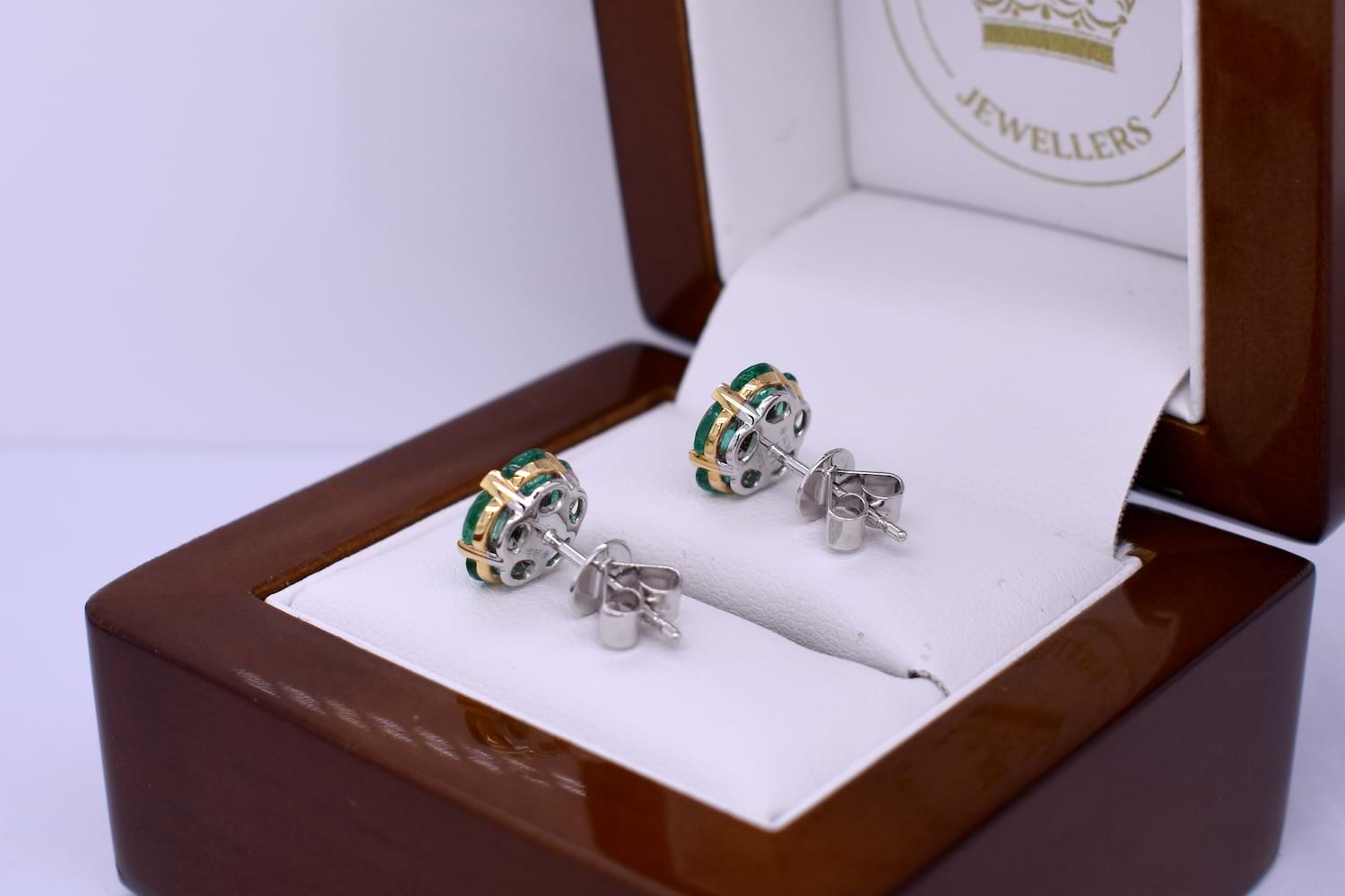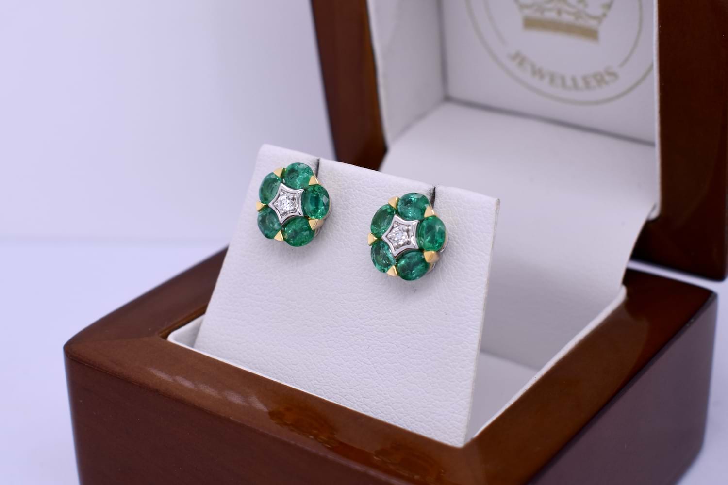 18ct Yellow & White Gold 1.75ct Emerald & 0.06ct Diamond Flower Studs