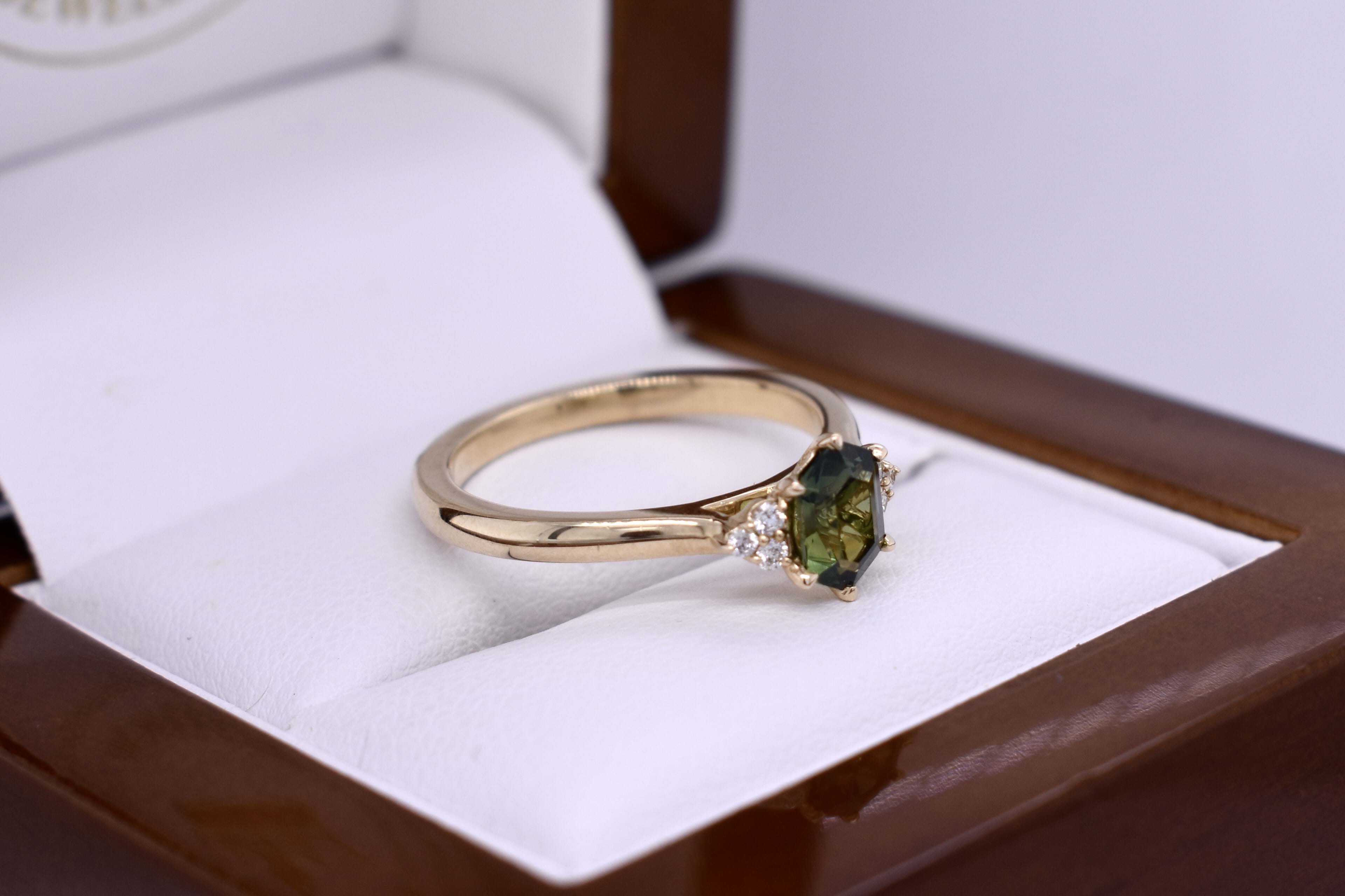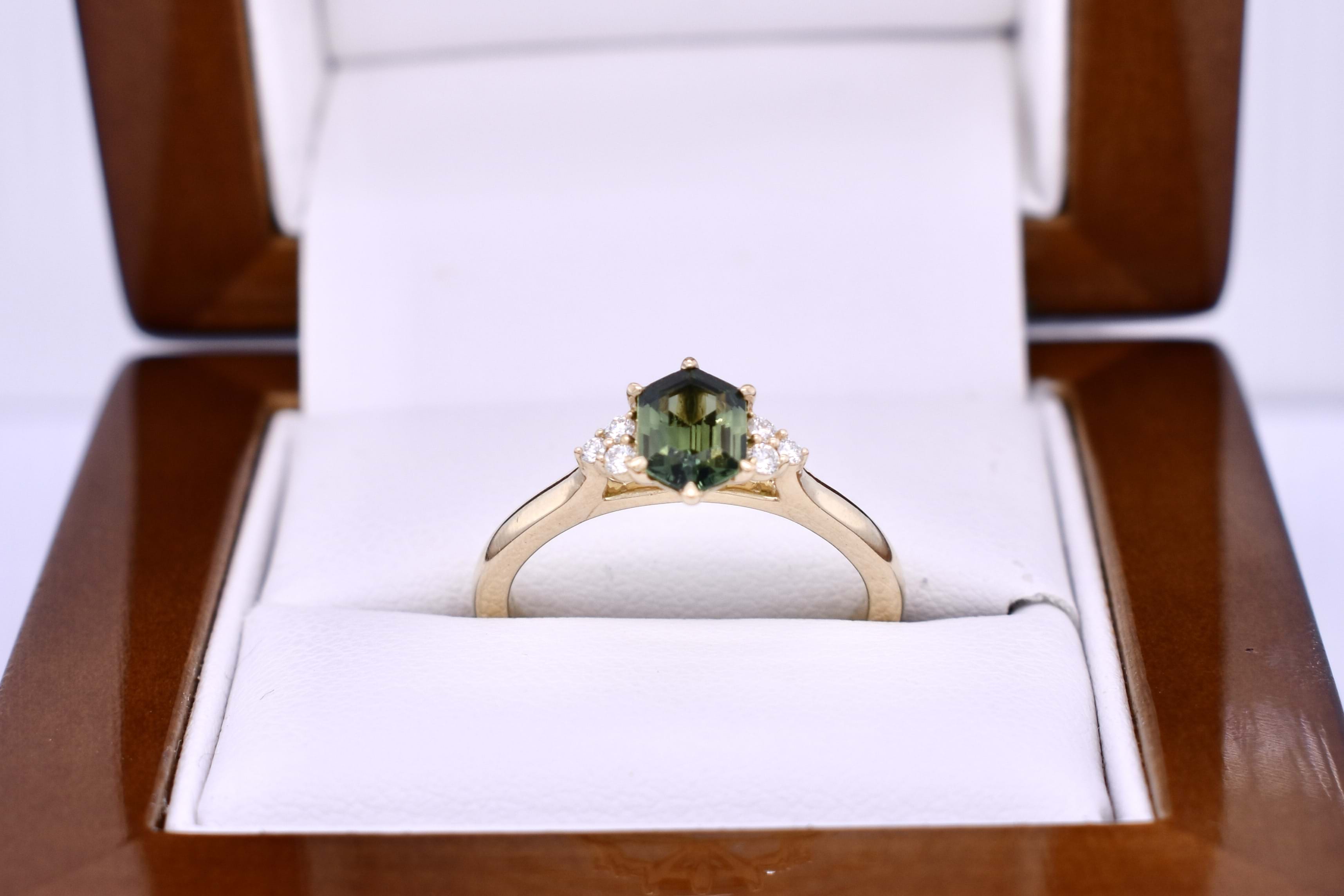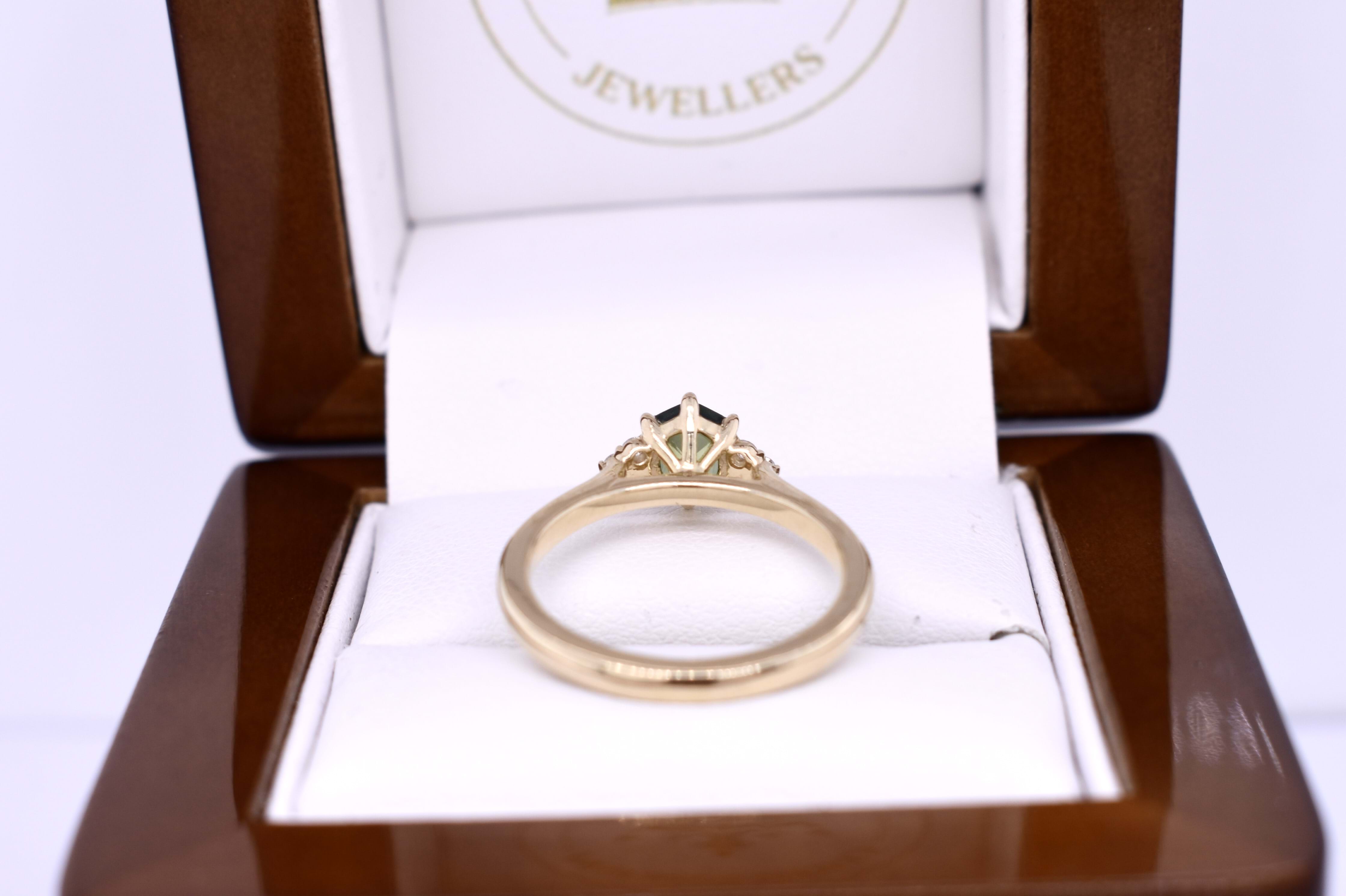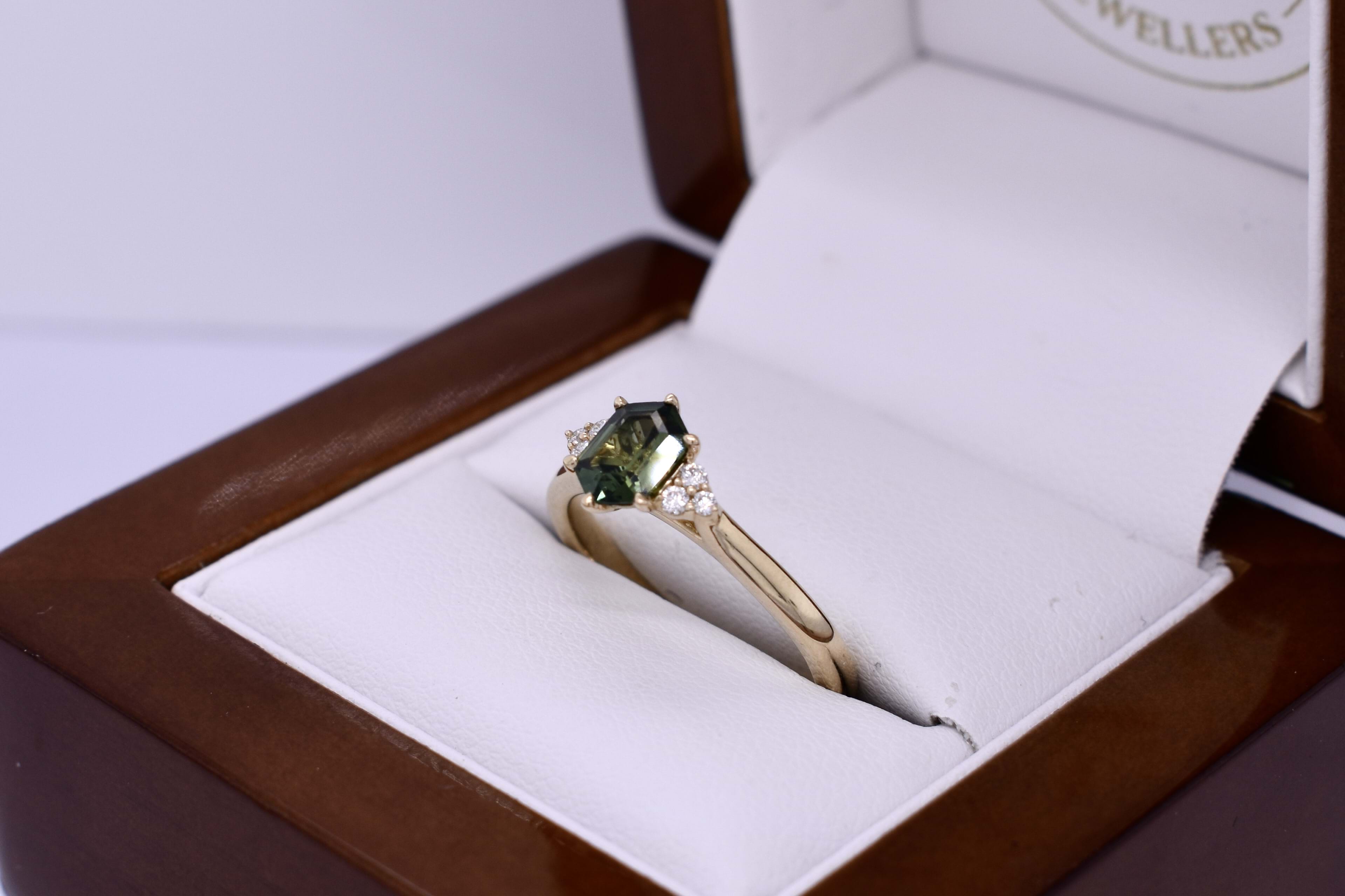9ct Yellow Gold 0.80ct Hexagonal Yellow/Green Aus Sapphire & 0.06ct Diamond Ring (M)