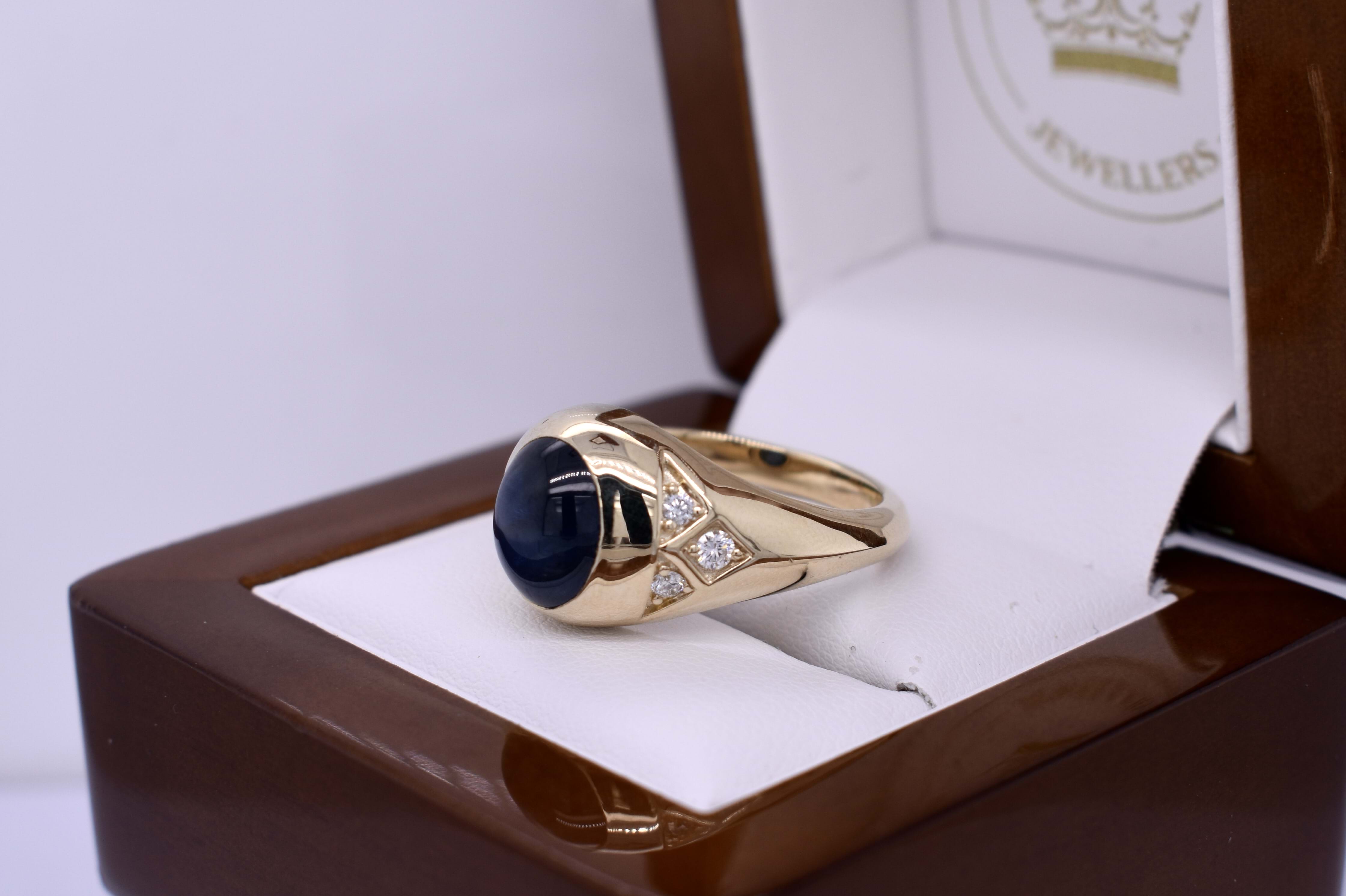 9ct Yellow Gold Cabochon 6.40ct Sapphire and Diamond Ring (S+)