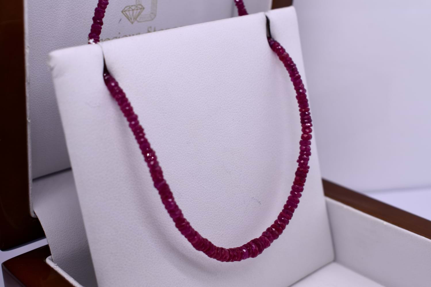9ct Yellow Gold Faceted Burmese Ruby 54cm Strand