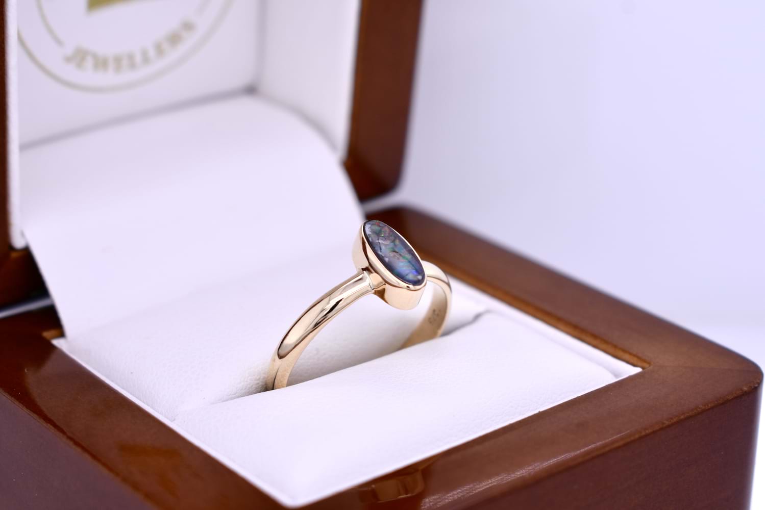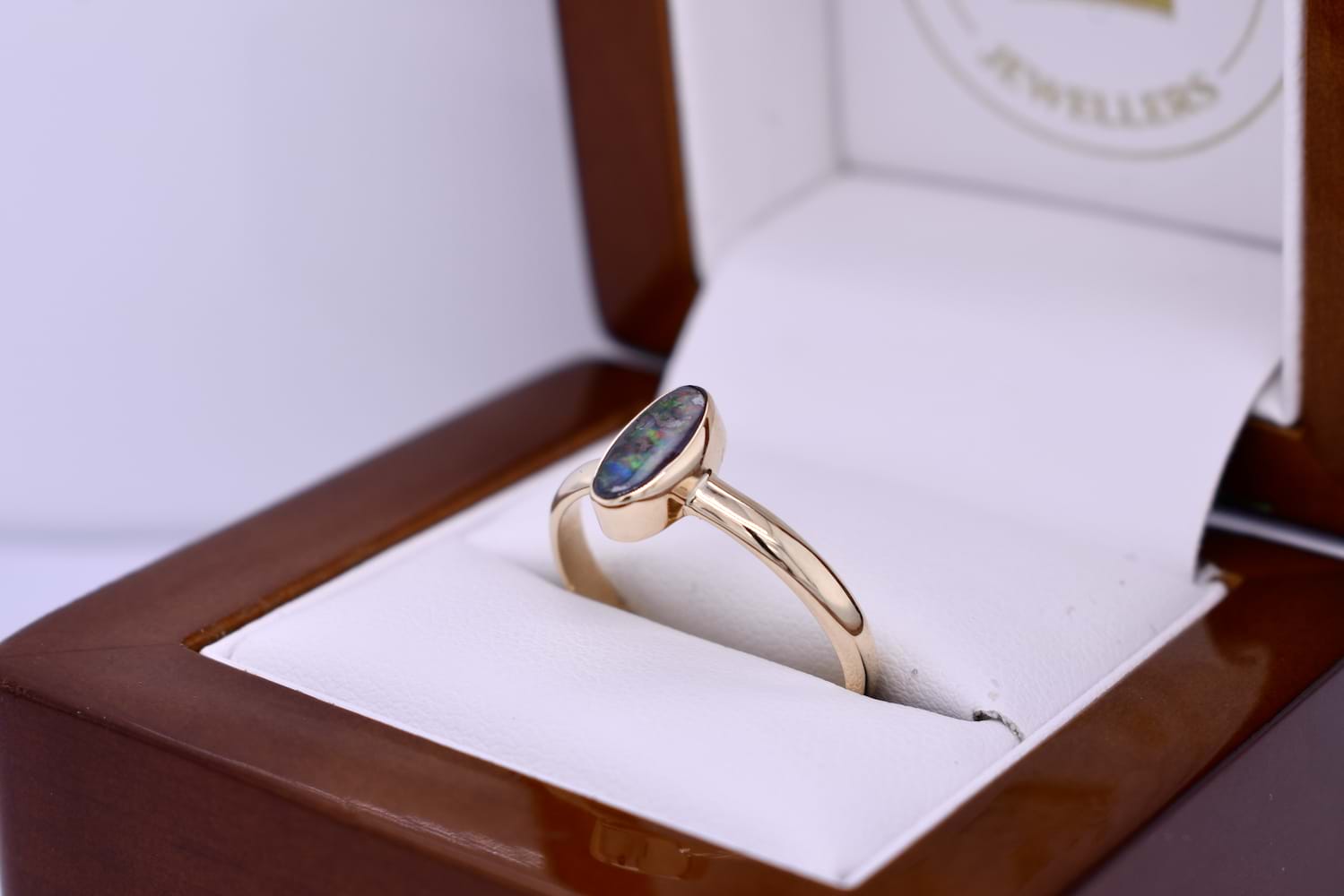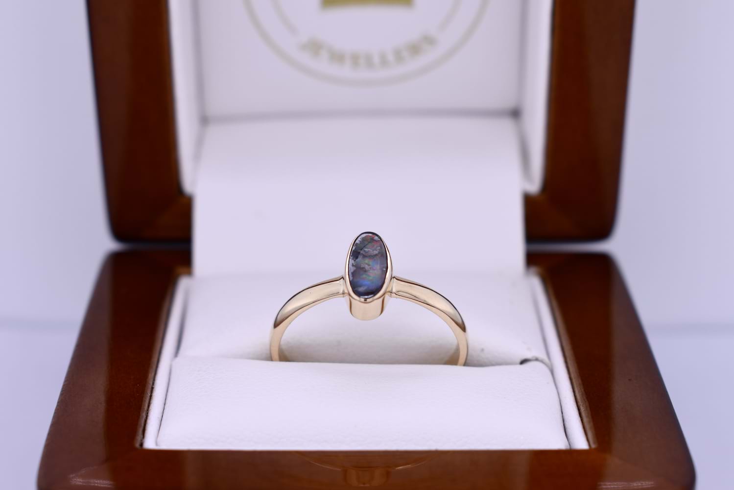 9ct Yellow Gold Freeform 9.5x5.0mm Boulder Opal Ring (Q+)
