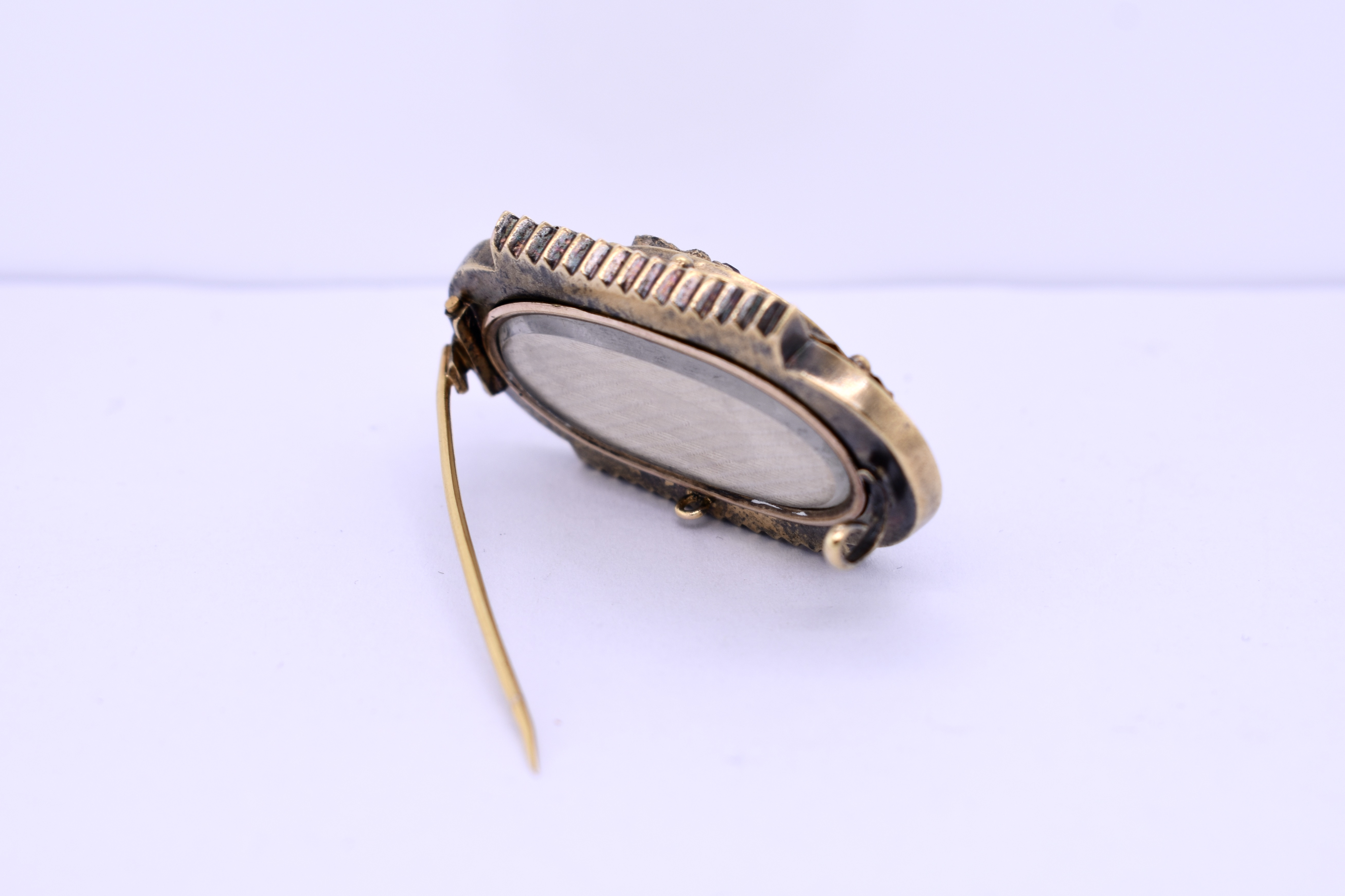 Antique 9ct Yellow Gold Floral Rhodolite Garnet Oval Locket Brooch C.1900