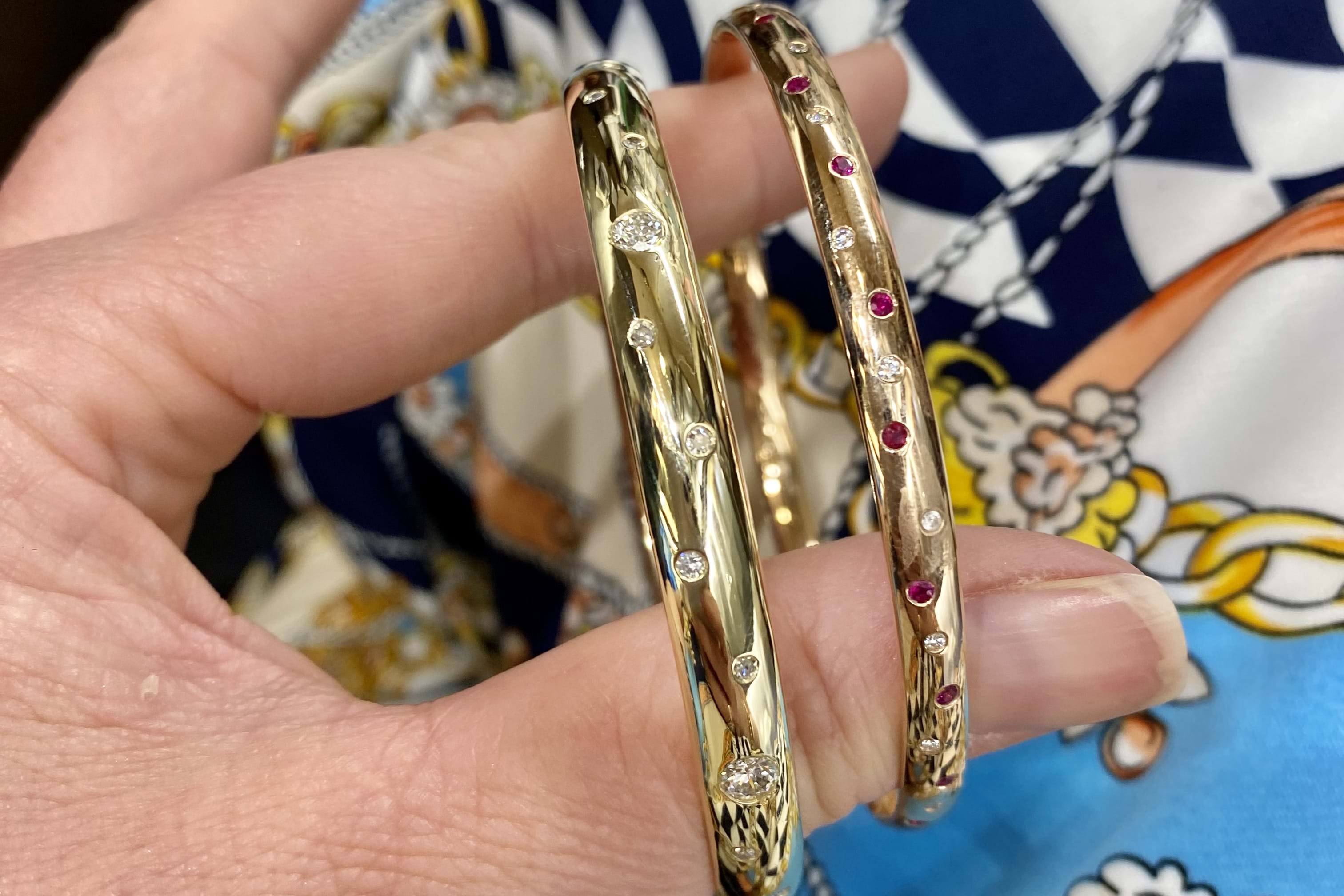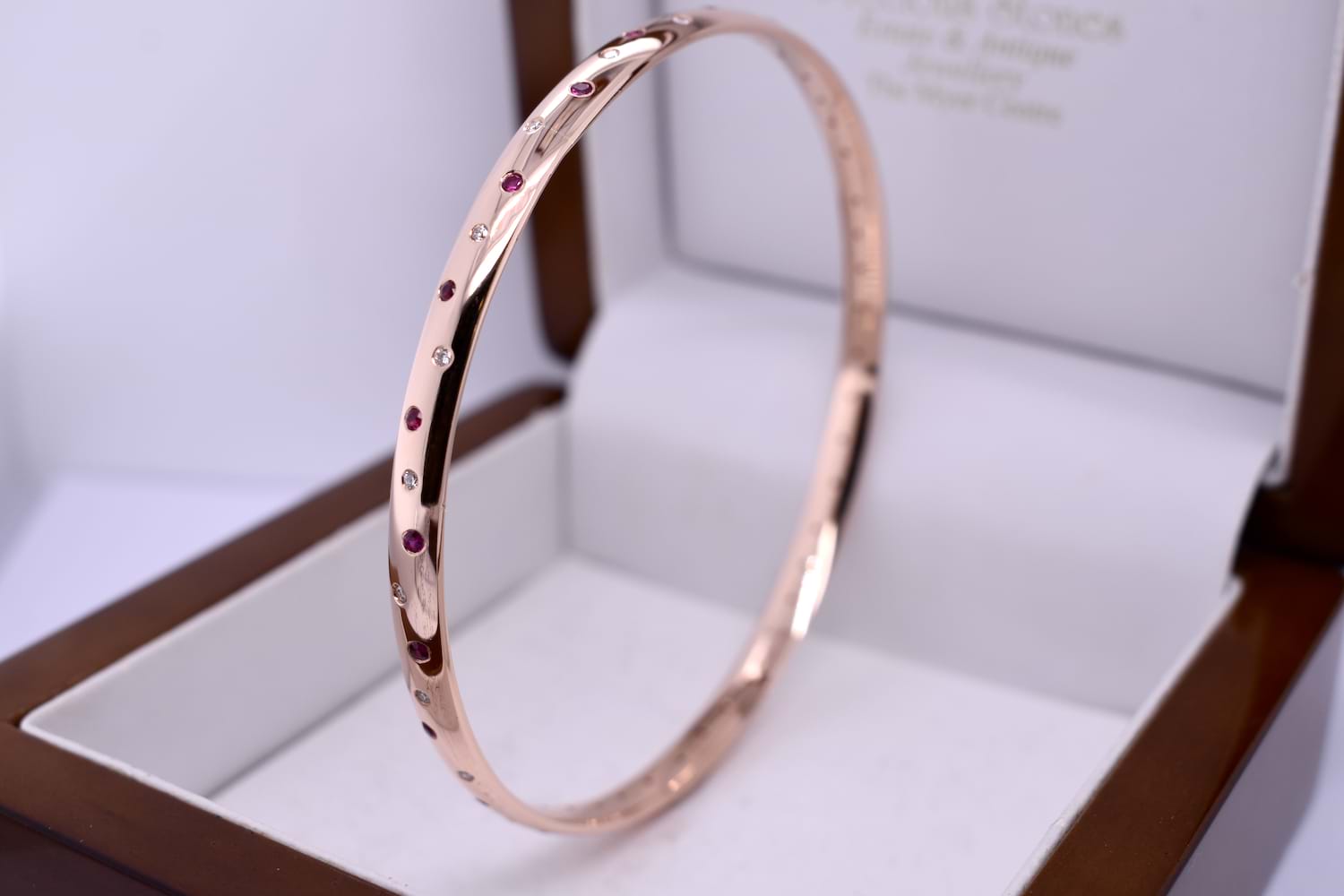 Handmade 9ct Rose Gold Ruby & Diamond Scatter Set 70mm Bangle