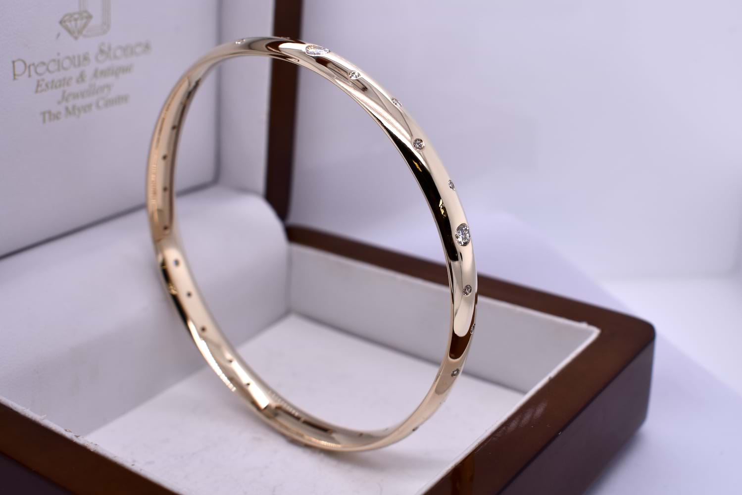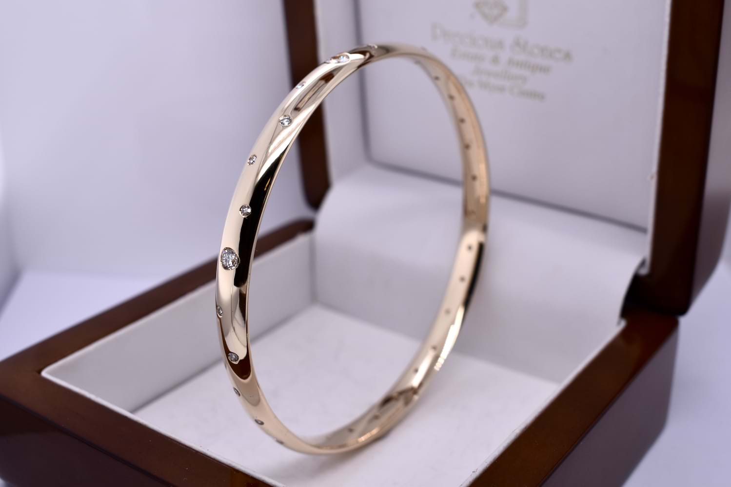 Handmade 9ct Yellow Gold Diamond Scatter Set 70mm Bangle