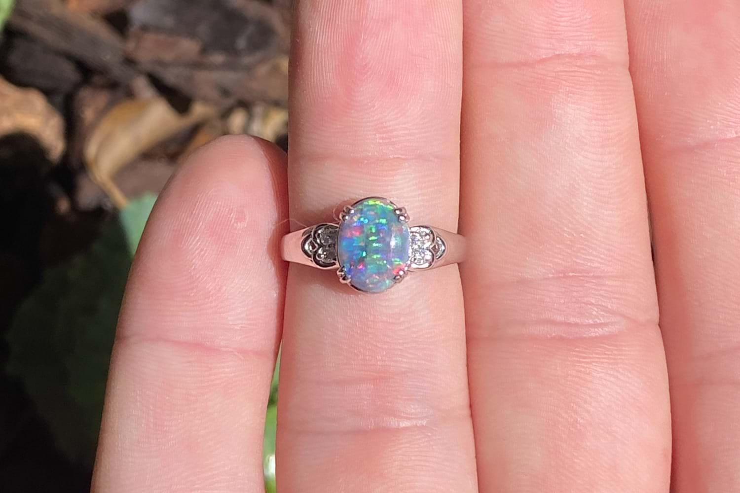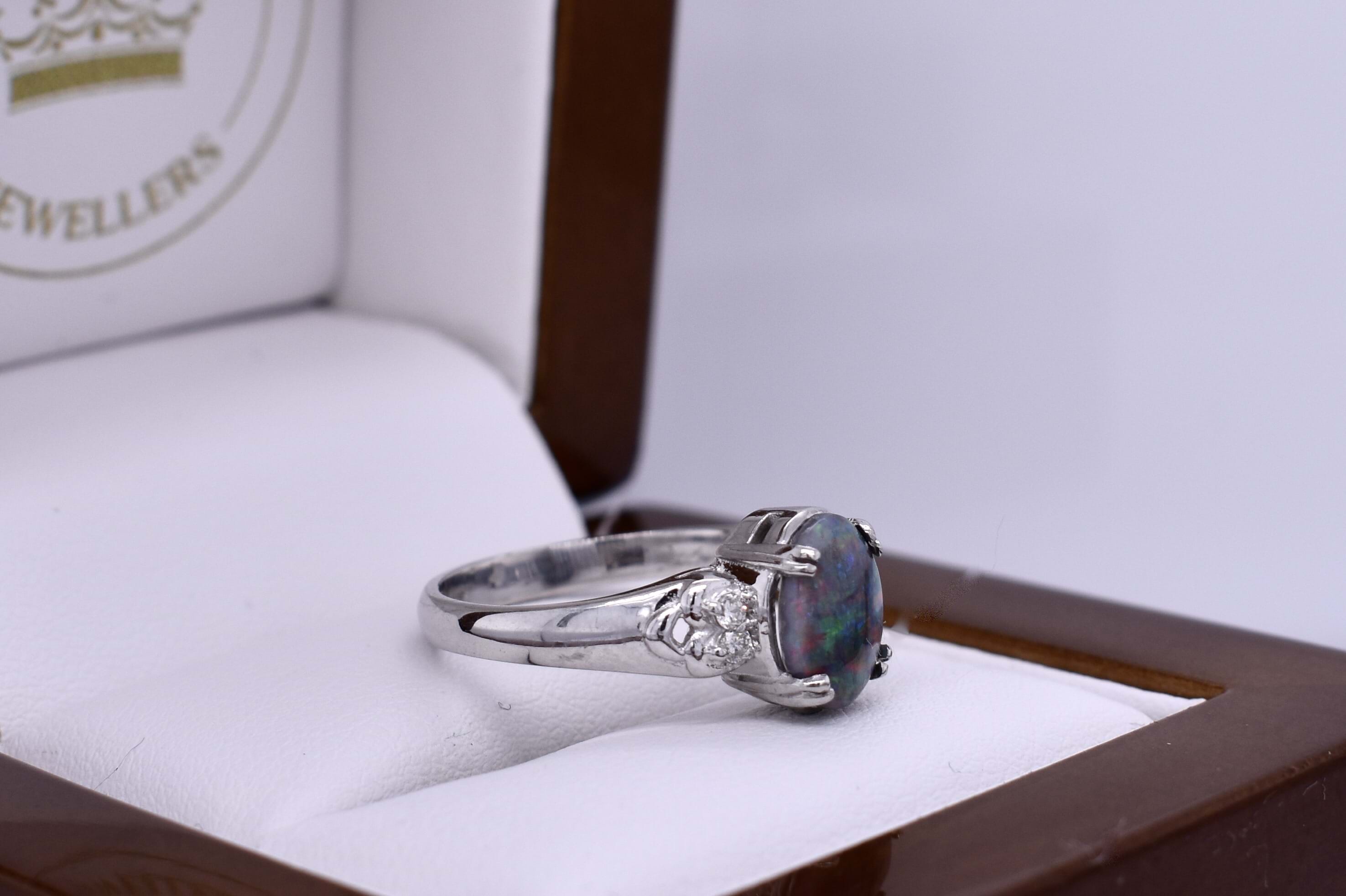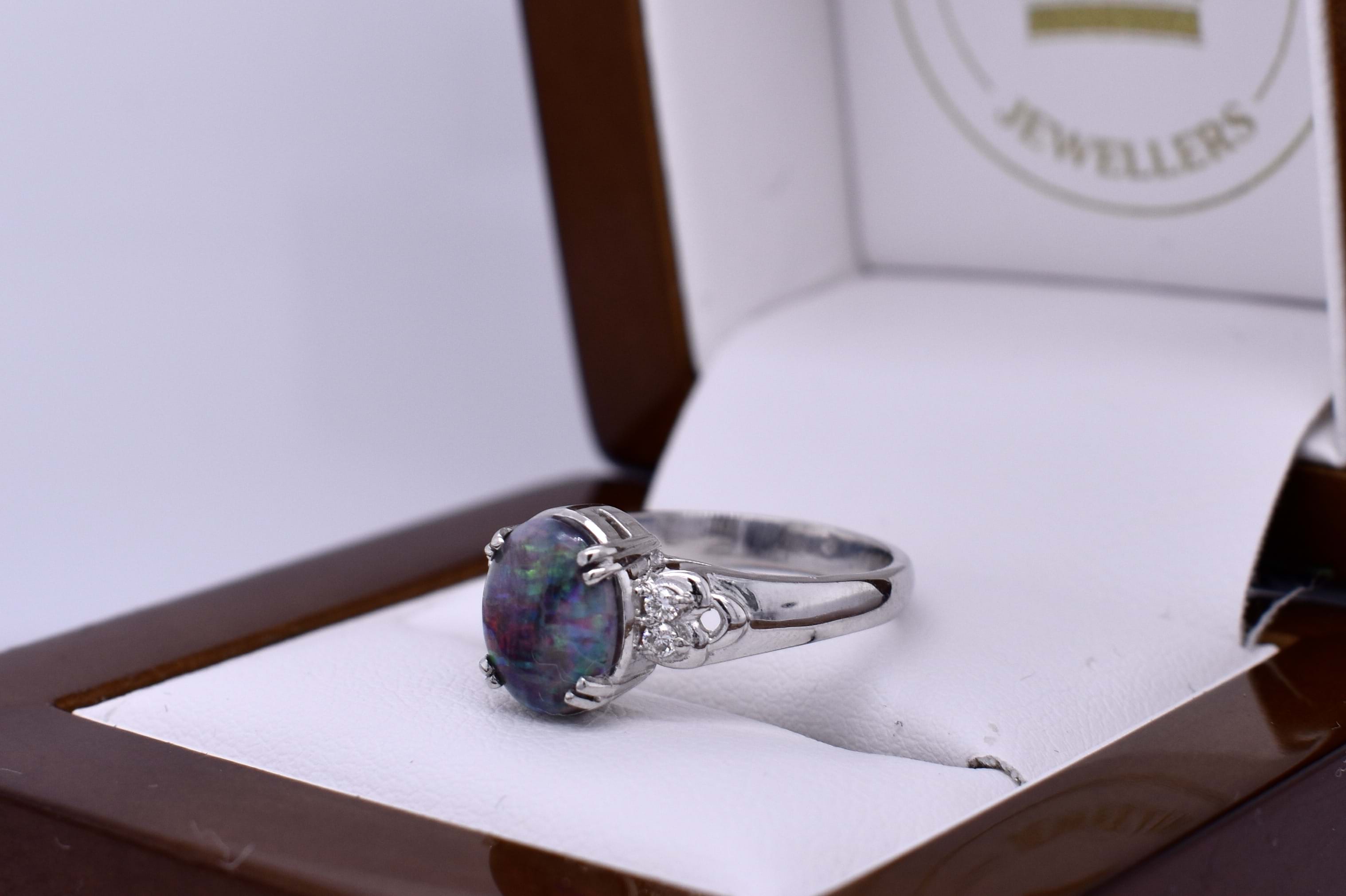 Platinum 1.00ct Lightning Ridge Semi Black & 0.06ct Diamond Ring (L)
