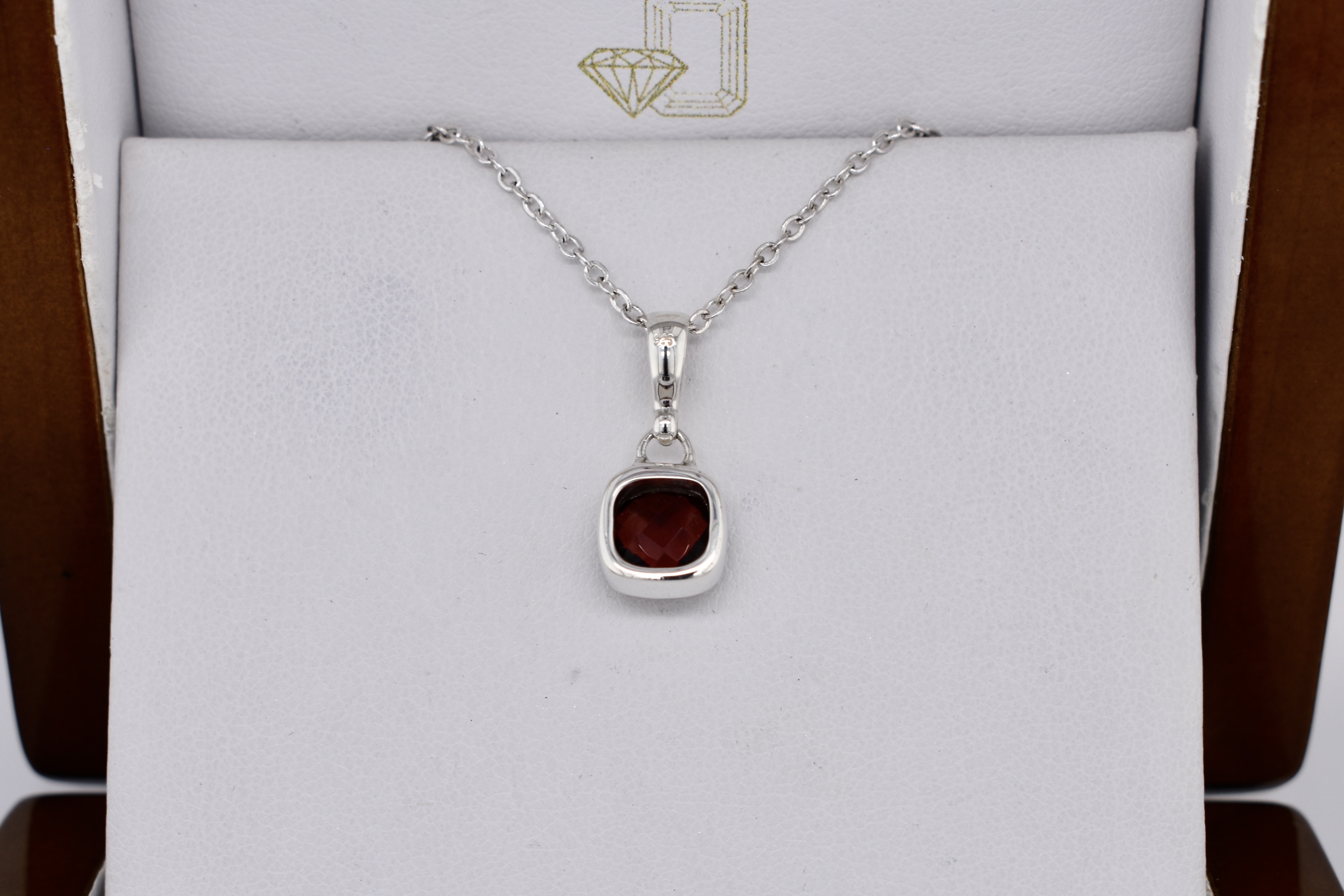 SOLD Sterling Silver Garnet Cushion Shaped Bezel Set Pendant