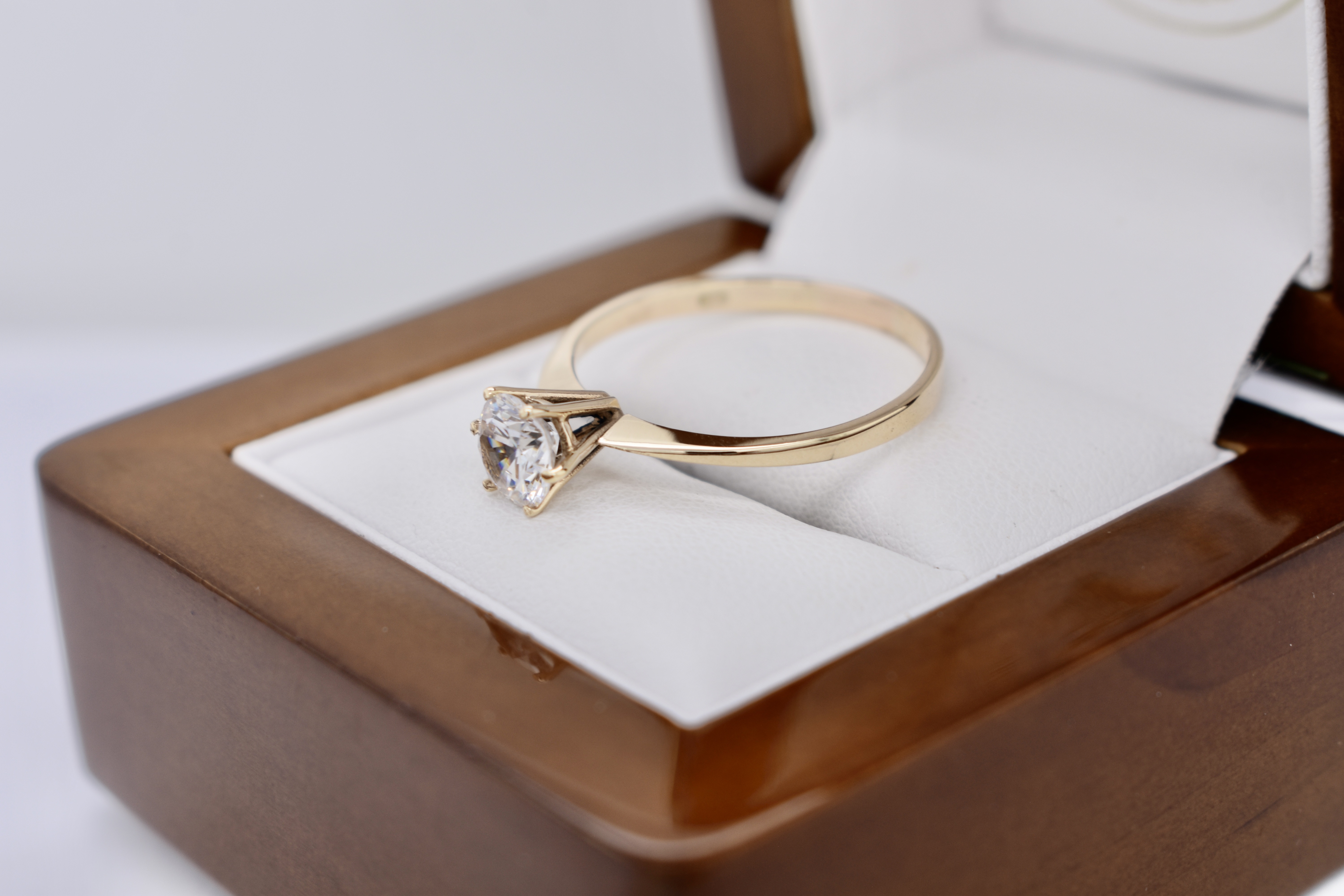 Vintage 9ct Yellow Gold Round Cubic Zirconia Solitaire Ring (V+)