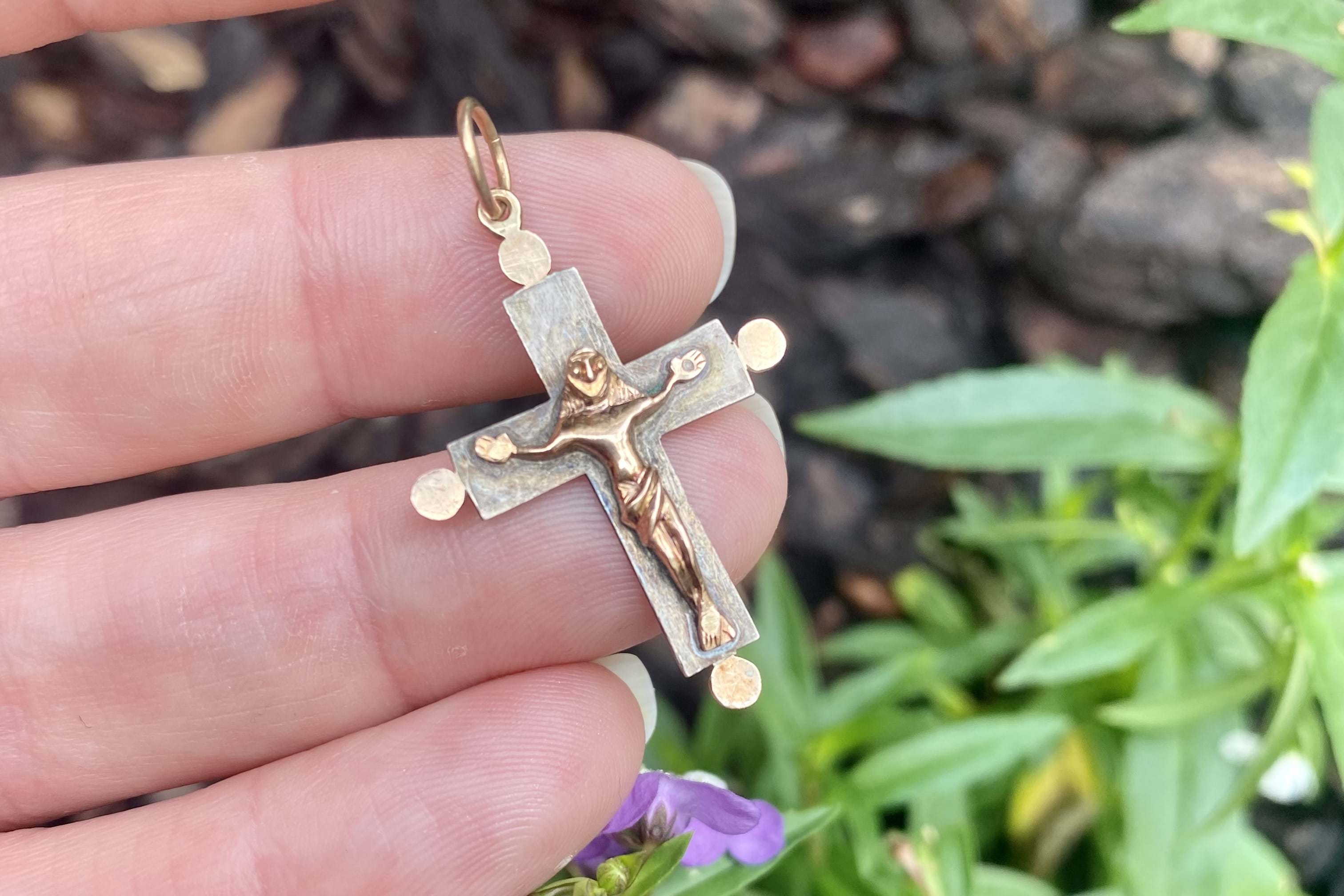 Vintage Sterling Silver & 9ct Rose Gold Crucifix Cross