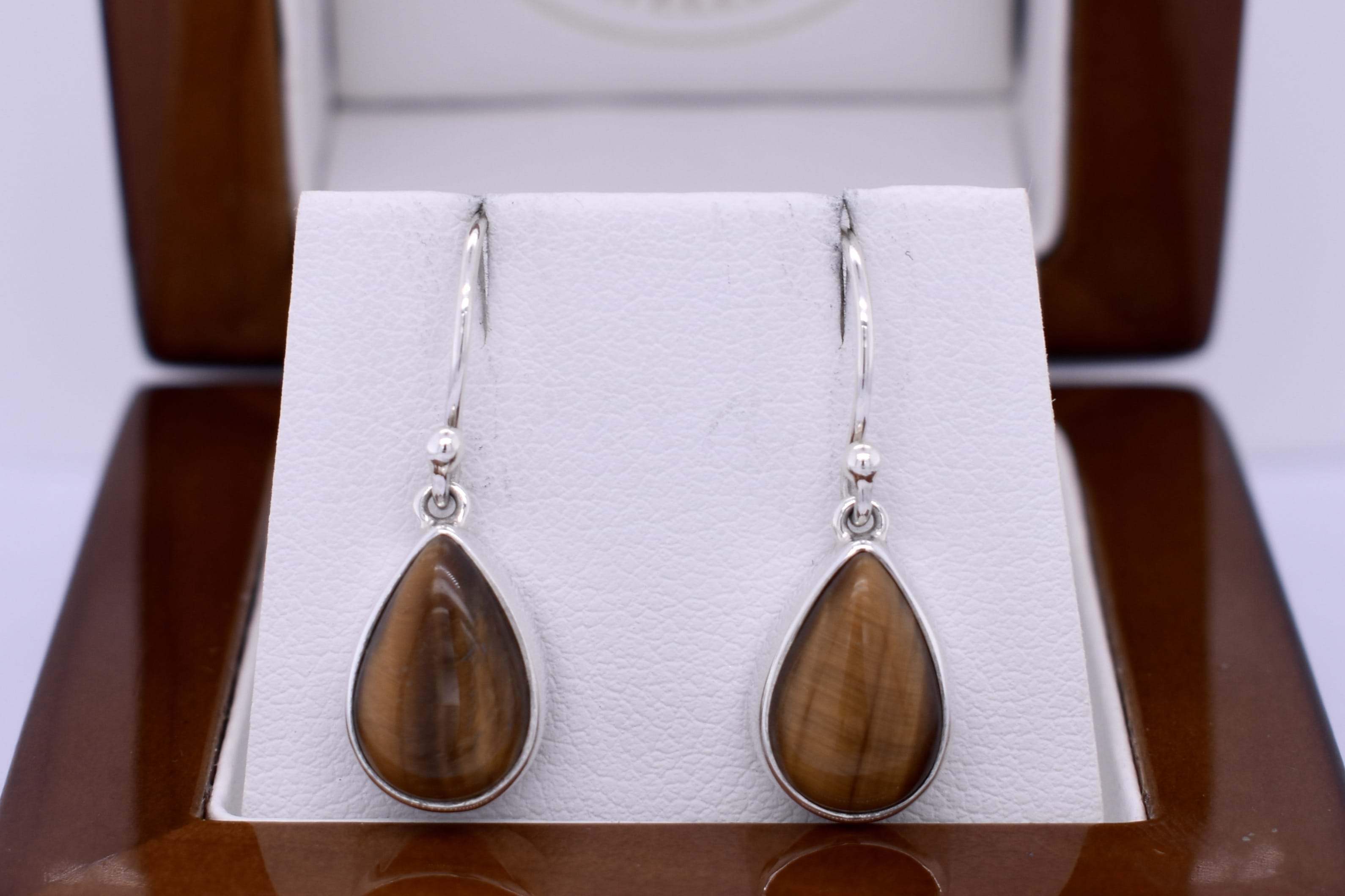 Handmade Sterling Silver Tigers Eye Pear Shaped Drops