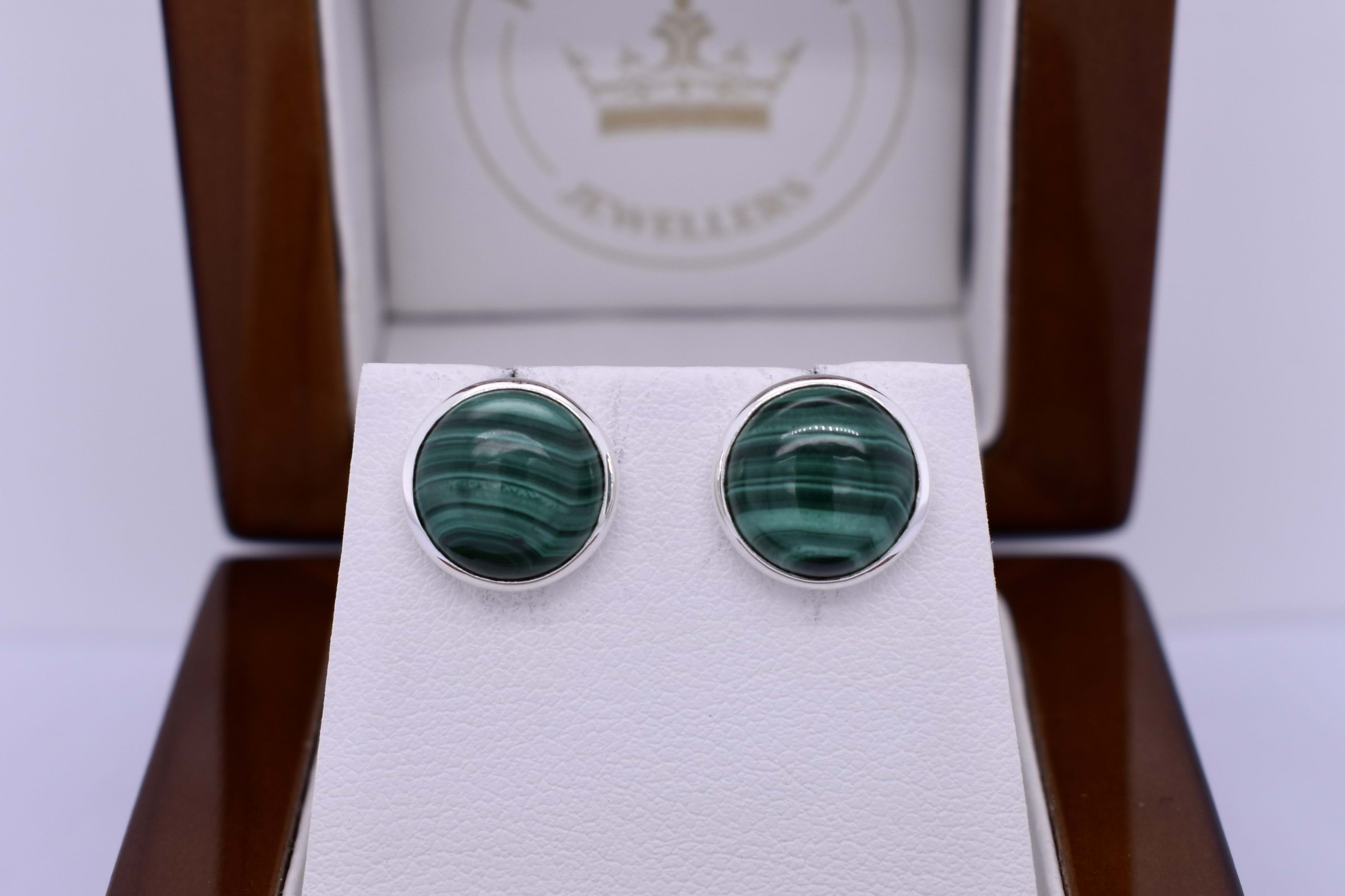 Handmade Sterling Silver Malachite Round Studs