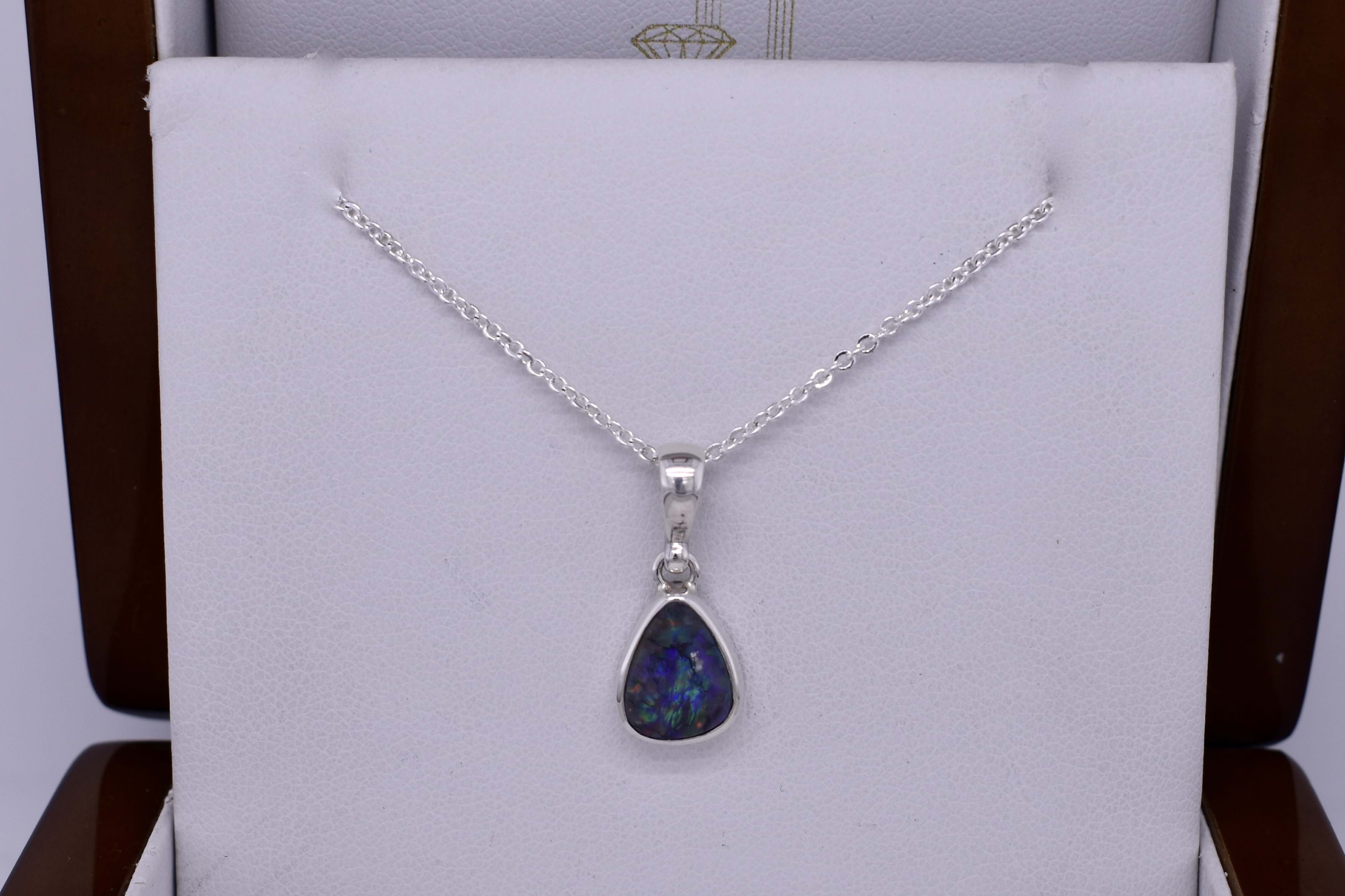 18ct White Gold Freeform Black Harlequin Opal & 0.20ct Diamond Slide Pendant