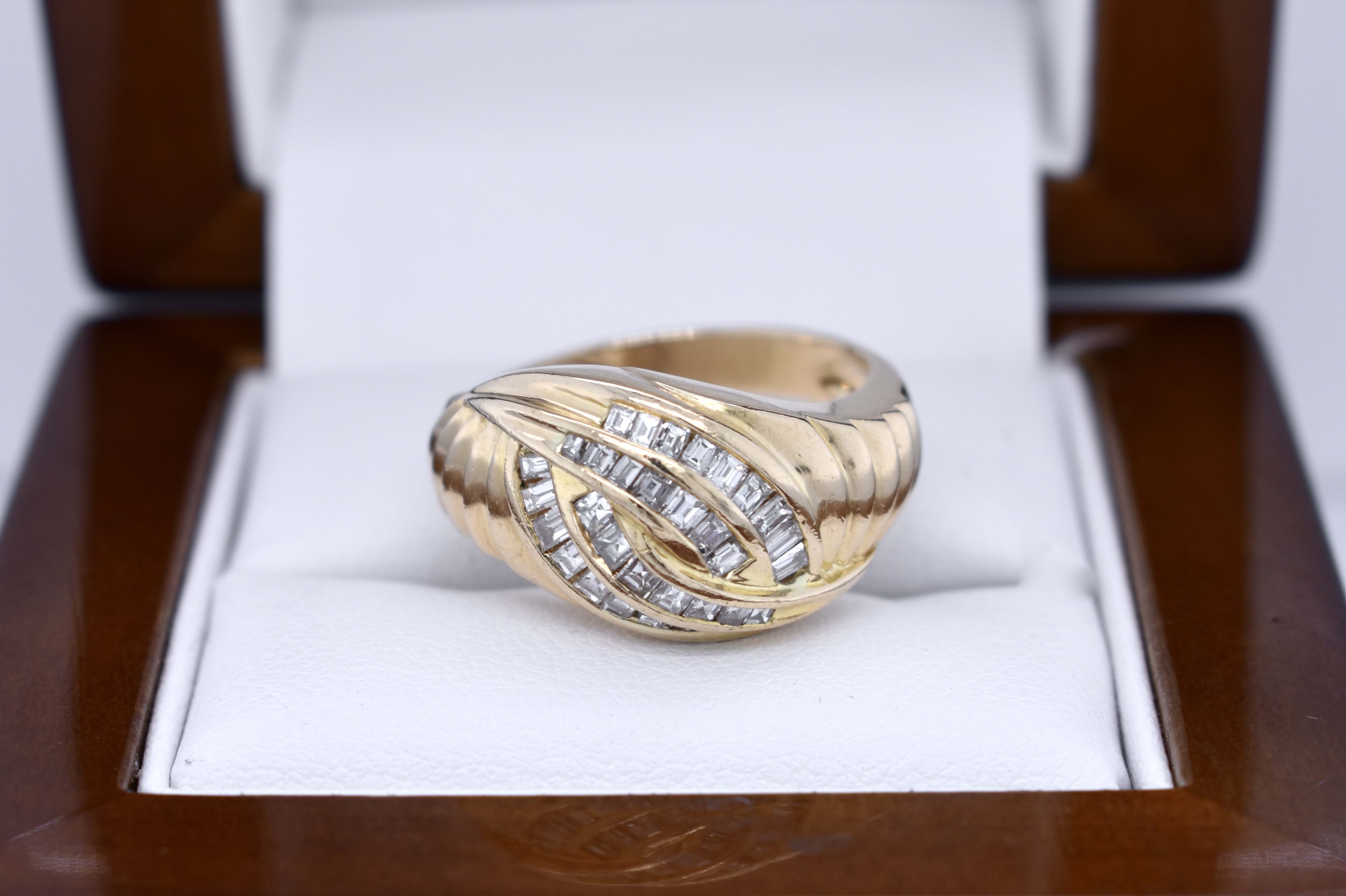 Vintage 18ct Yellow Gold 0.55ct Baguette Diamond Knot Style Ring (M)