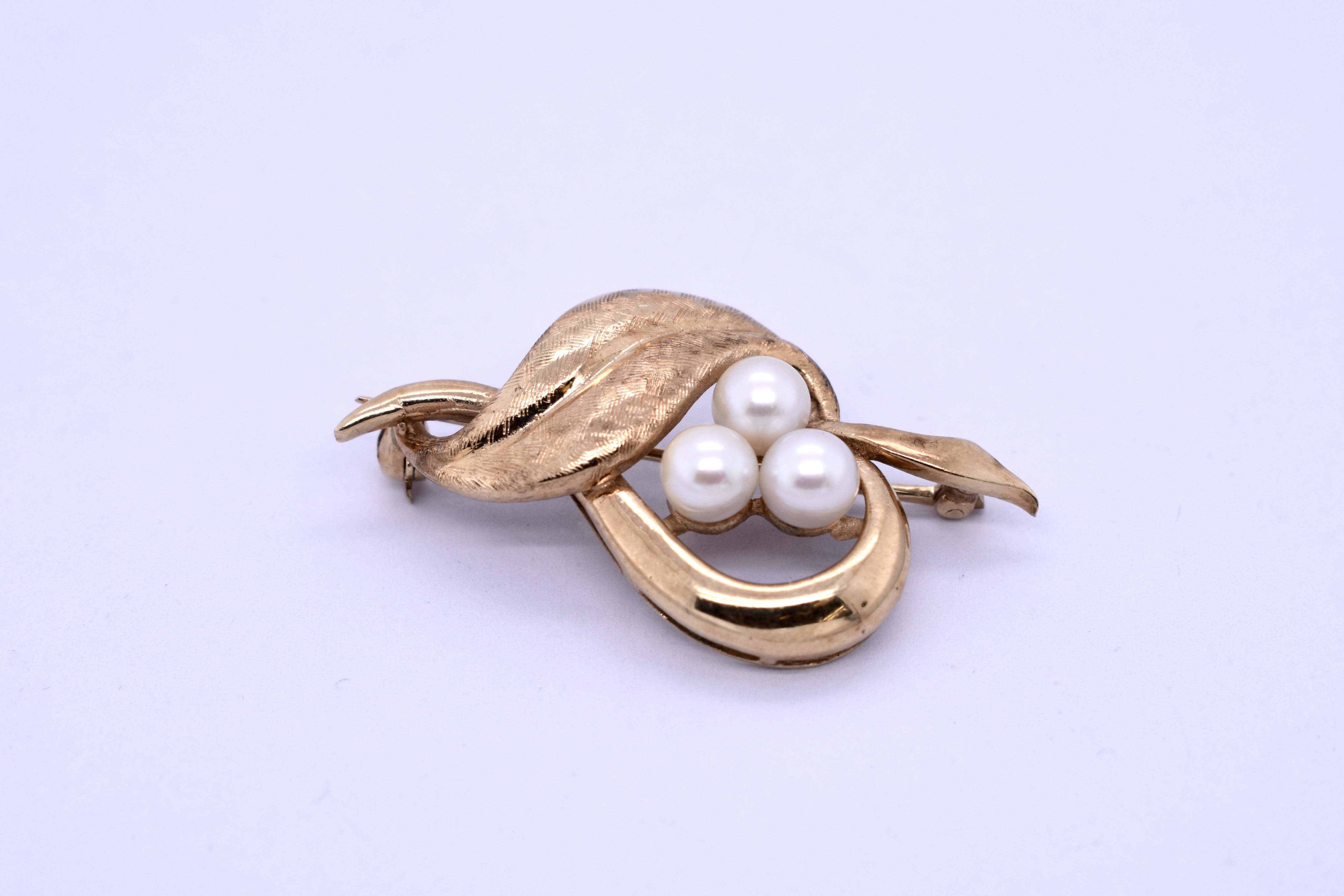 Vintage 13ct Yellow Gold Akoya Pearl Brooch