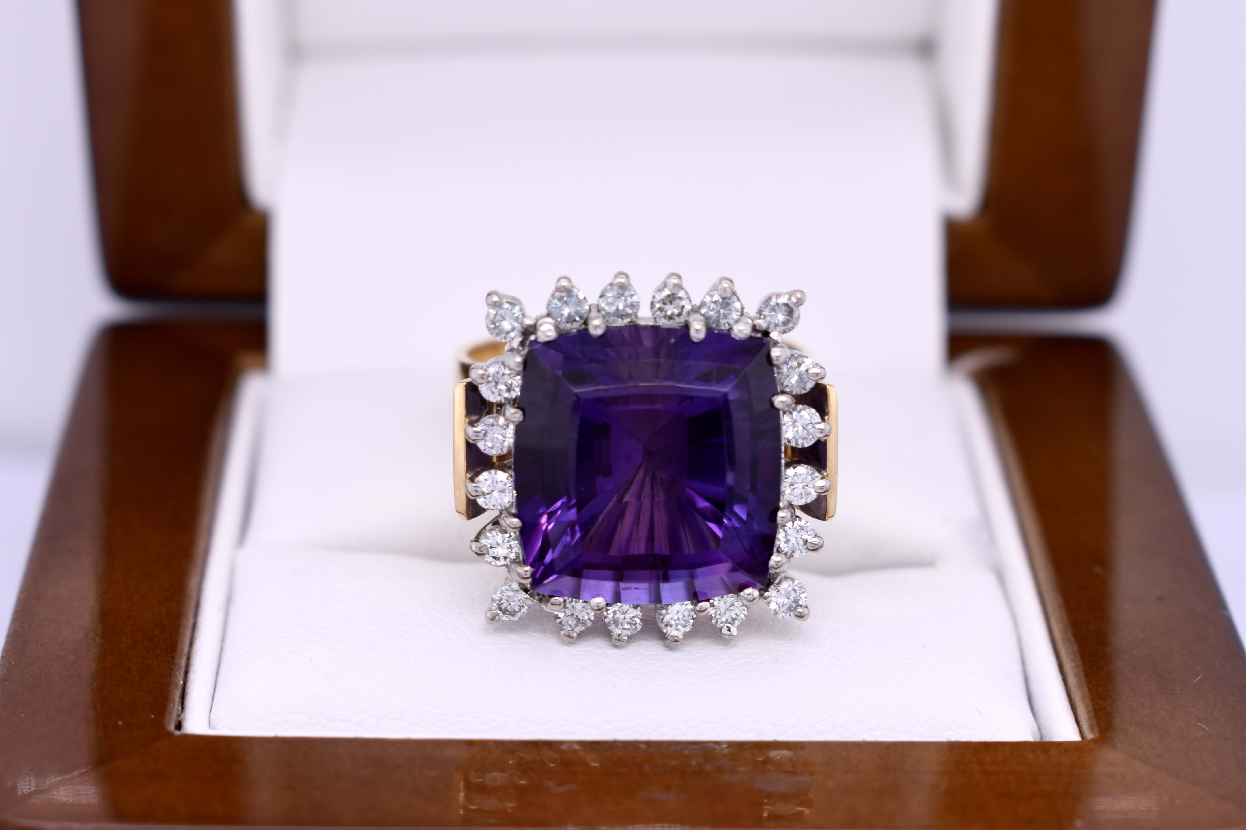 Vintage 18ct Yellow & White Gold 8.50ct Amethyst + 0.60ct Diamond Ring (O)