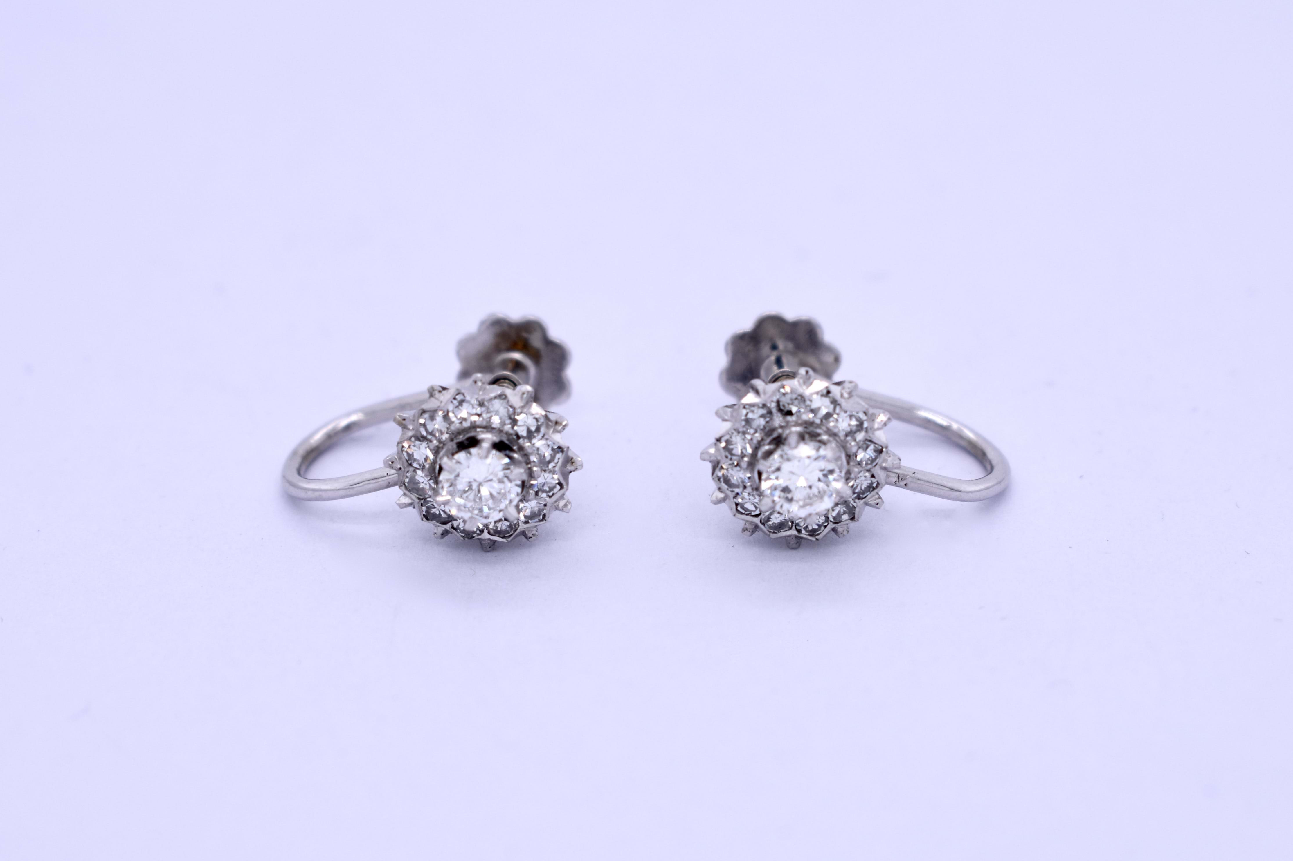 Vintage 18ct White Gold 0.36ct Round Diamond & 0.36ct Single Cut Diamond Flower Screw On Earrings