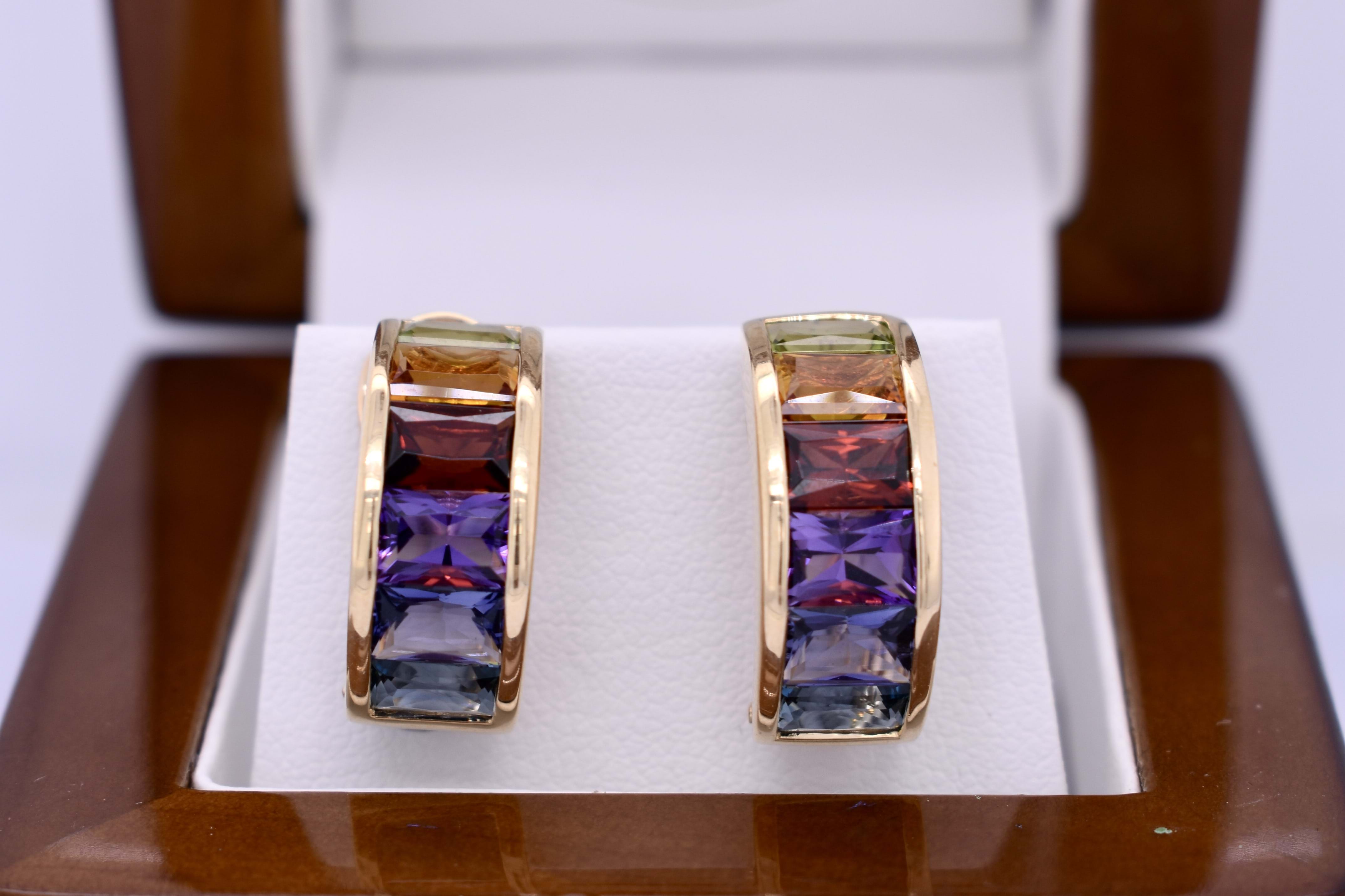 Vintage 18ct Yellow Gold Multi-Gemstone Half Hoop Clip on Earrings