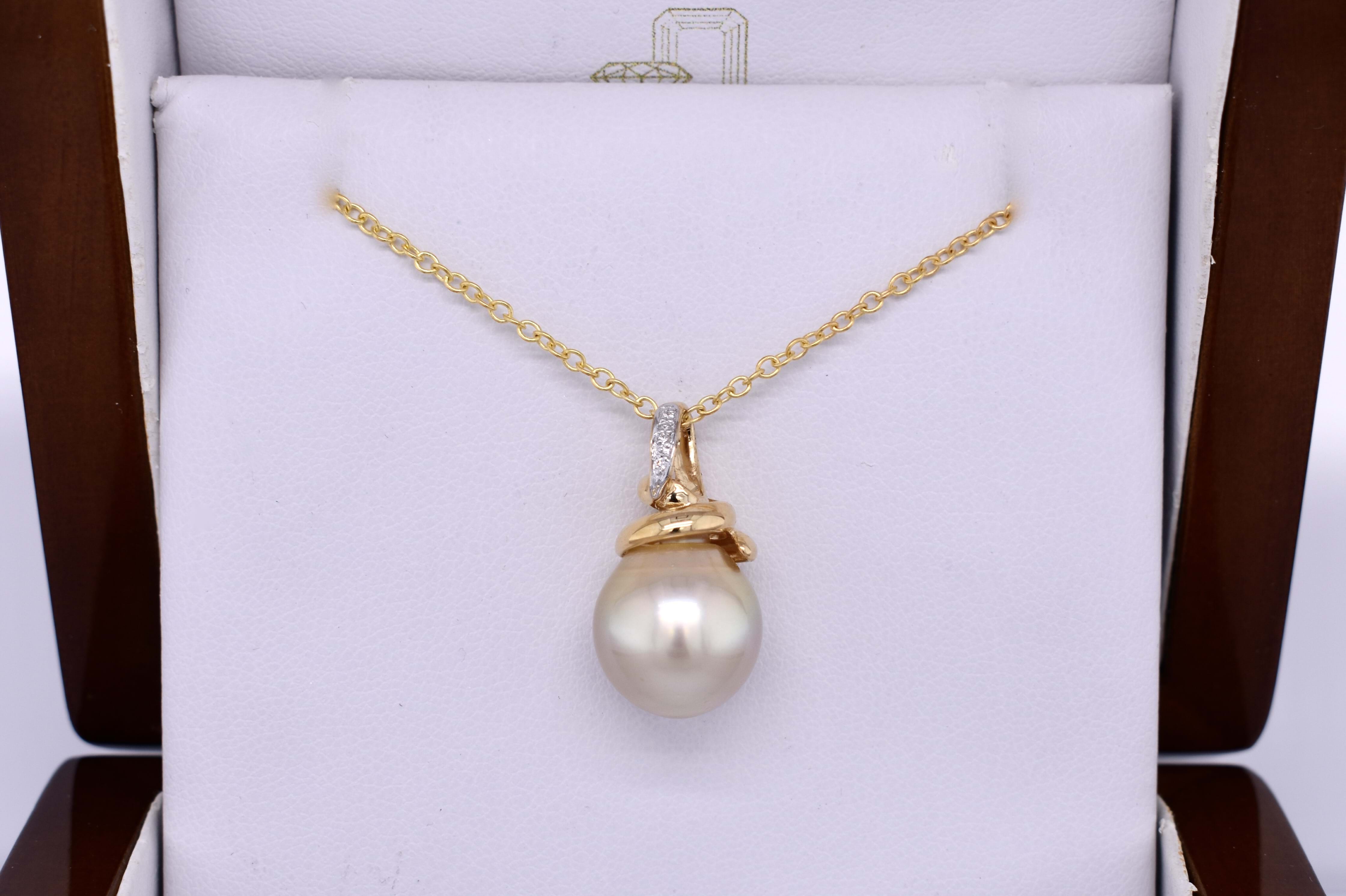 9ct Yellow Gold 10.5-11.0mm White South Sea Pearl & 0.07ct Diamond Drops