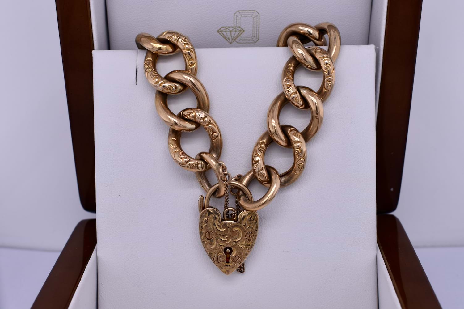 9ct Yellow Gold Edwardian Hollow Day & Night Curb Bracelet with 1968 Birmingham Padlock
