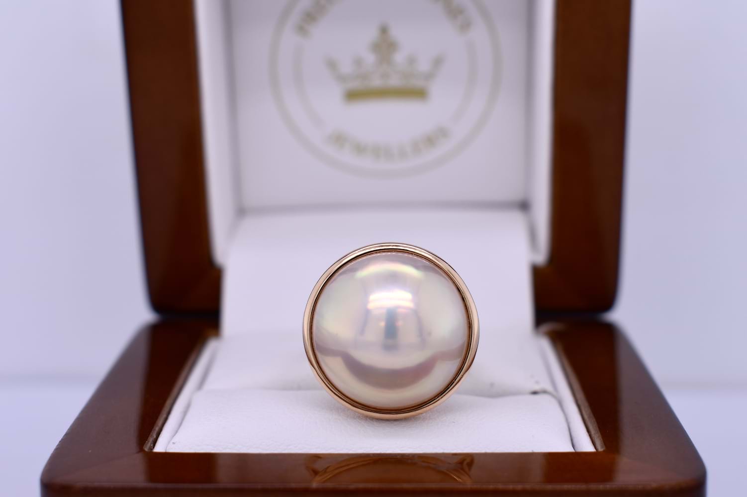 Handmade 18ct Yellow Gold 15.6mm White Mabe Pearl Ring (K+)