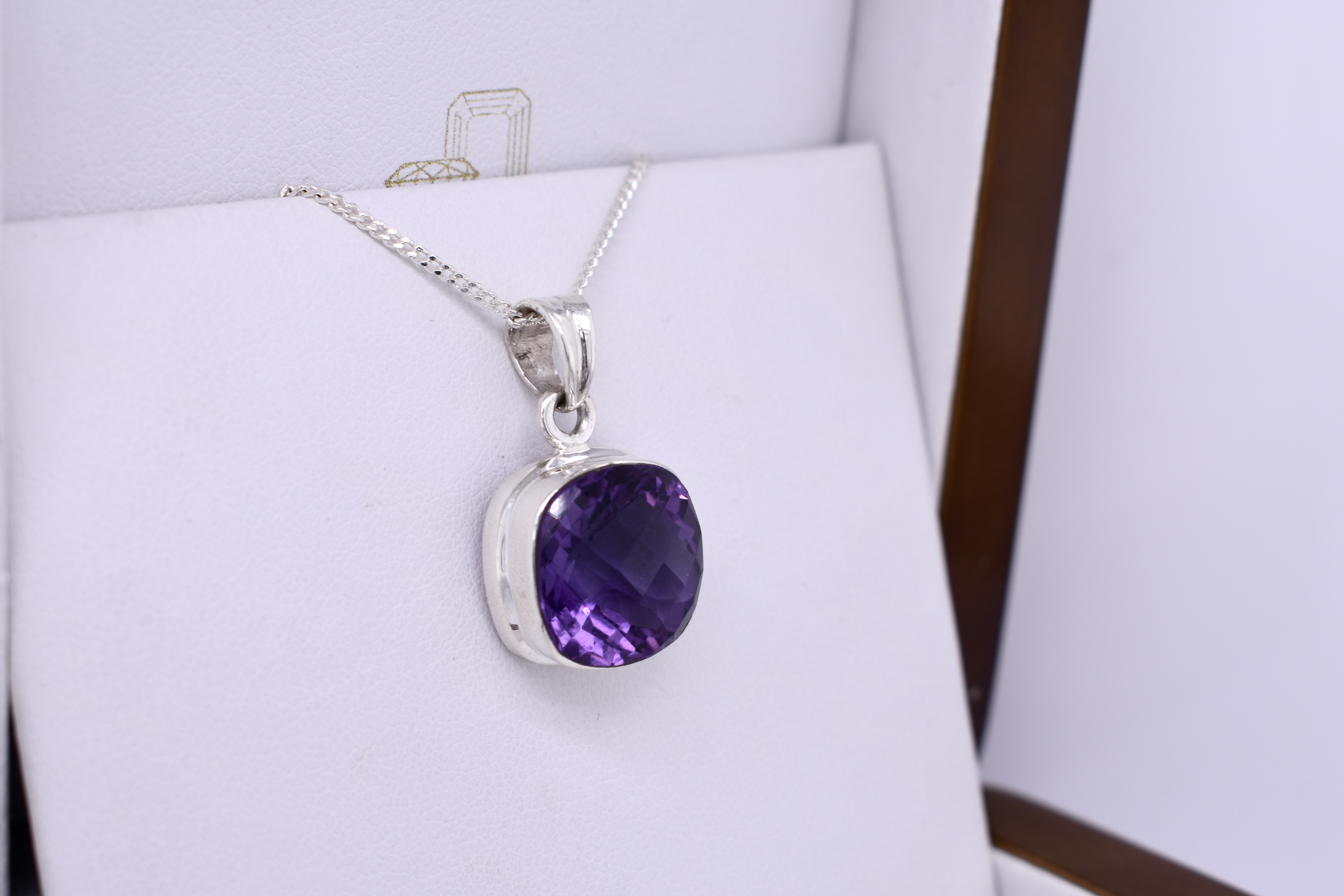 Handmade Sterling Silver Emerald Cut Peridot Semi Bezel Set Pendant