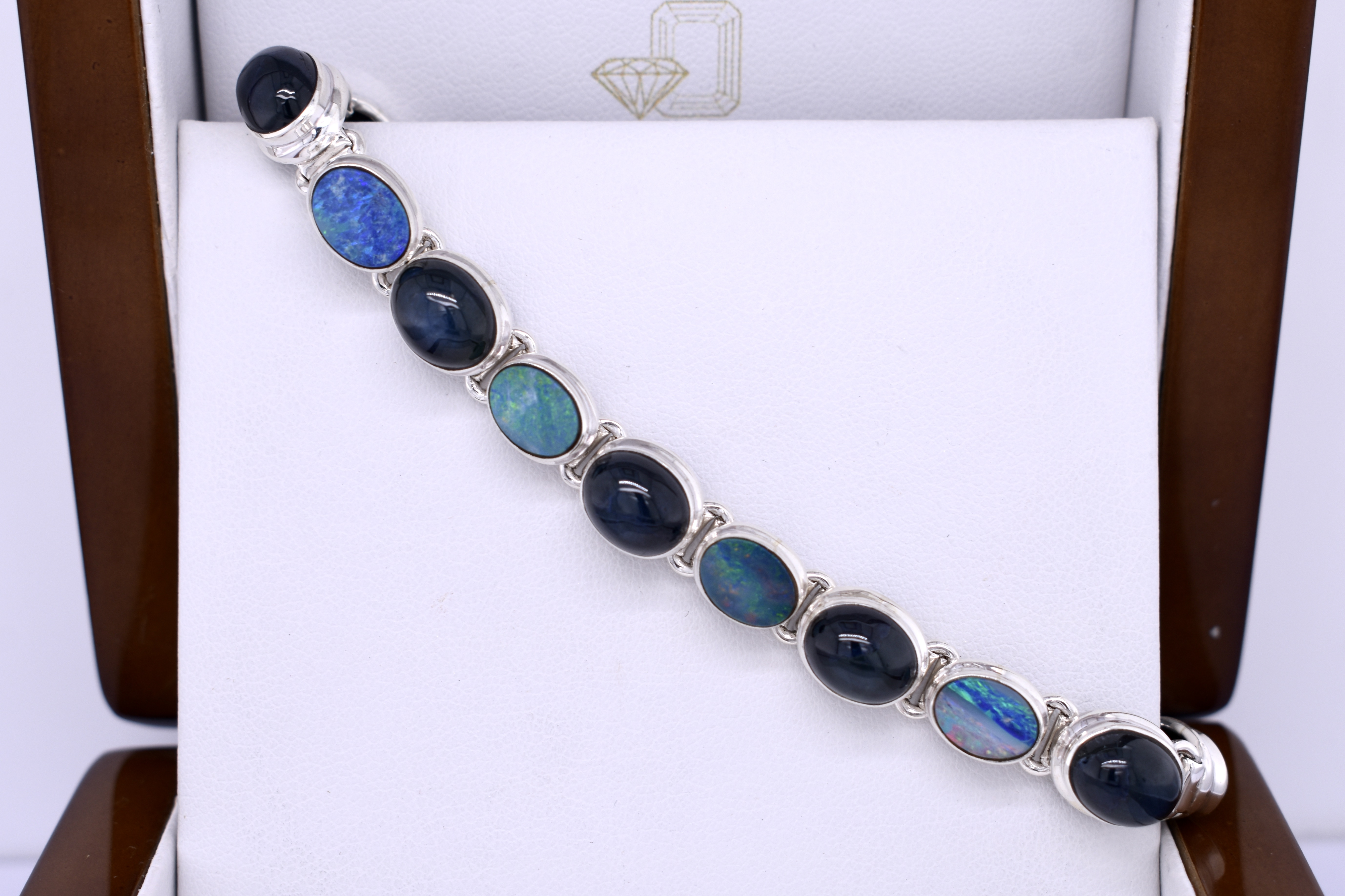 14ct White Gold 0.70ct Trilliant Lightning Ridge Opal Ring (N)