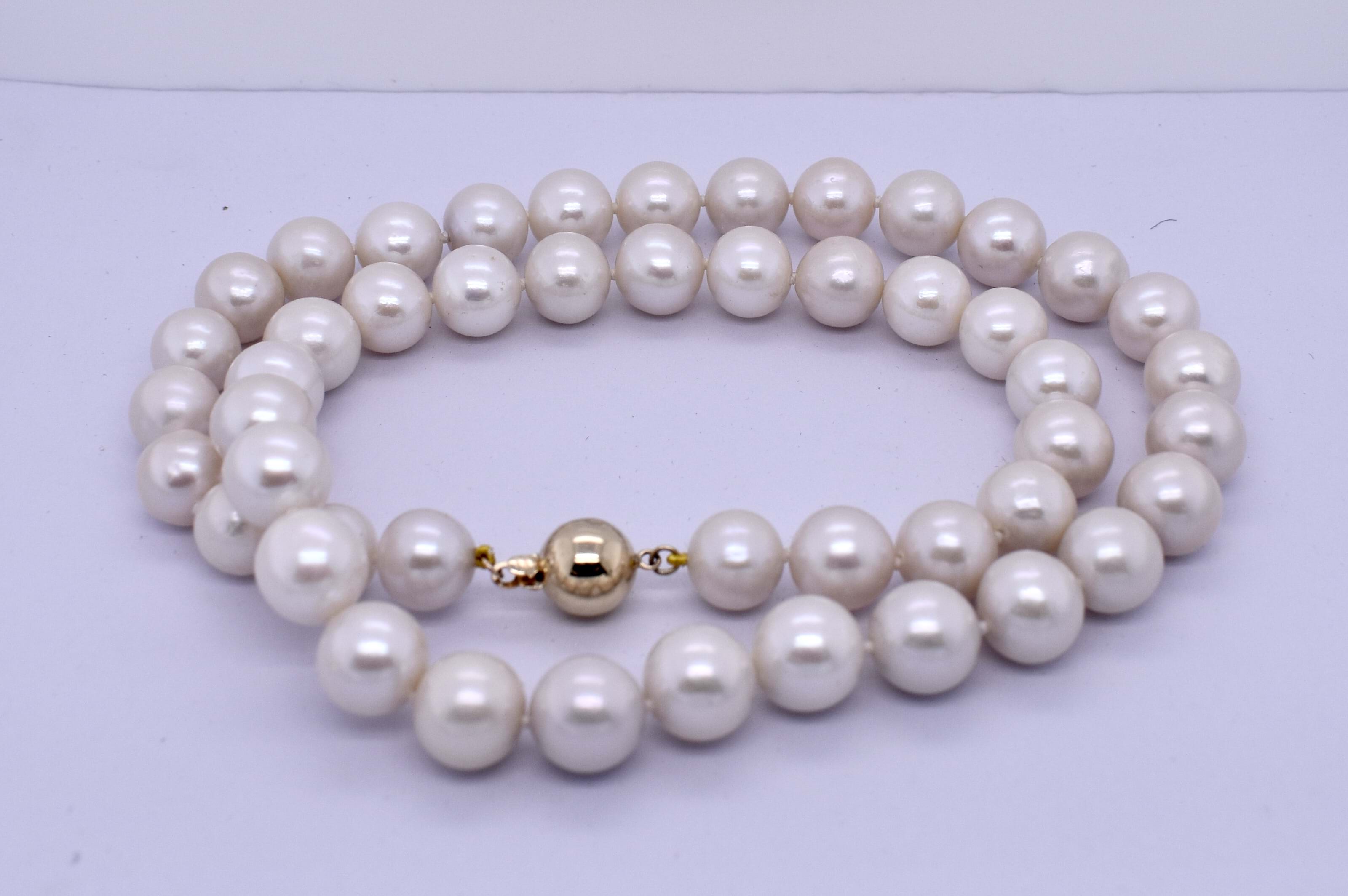 9ct Yellow Gold 9-10mm Freshwater White Pearl 50cm Strand